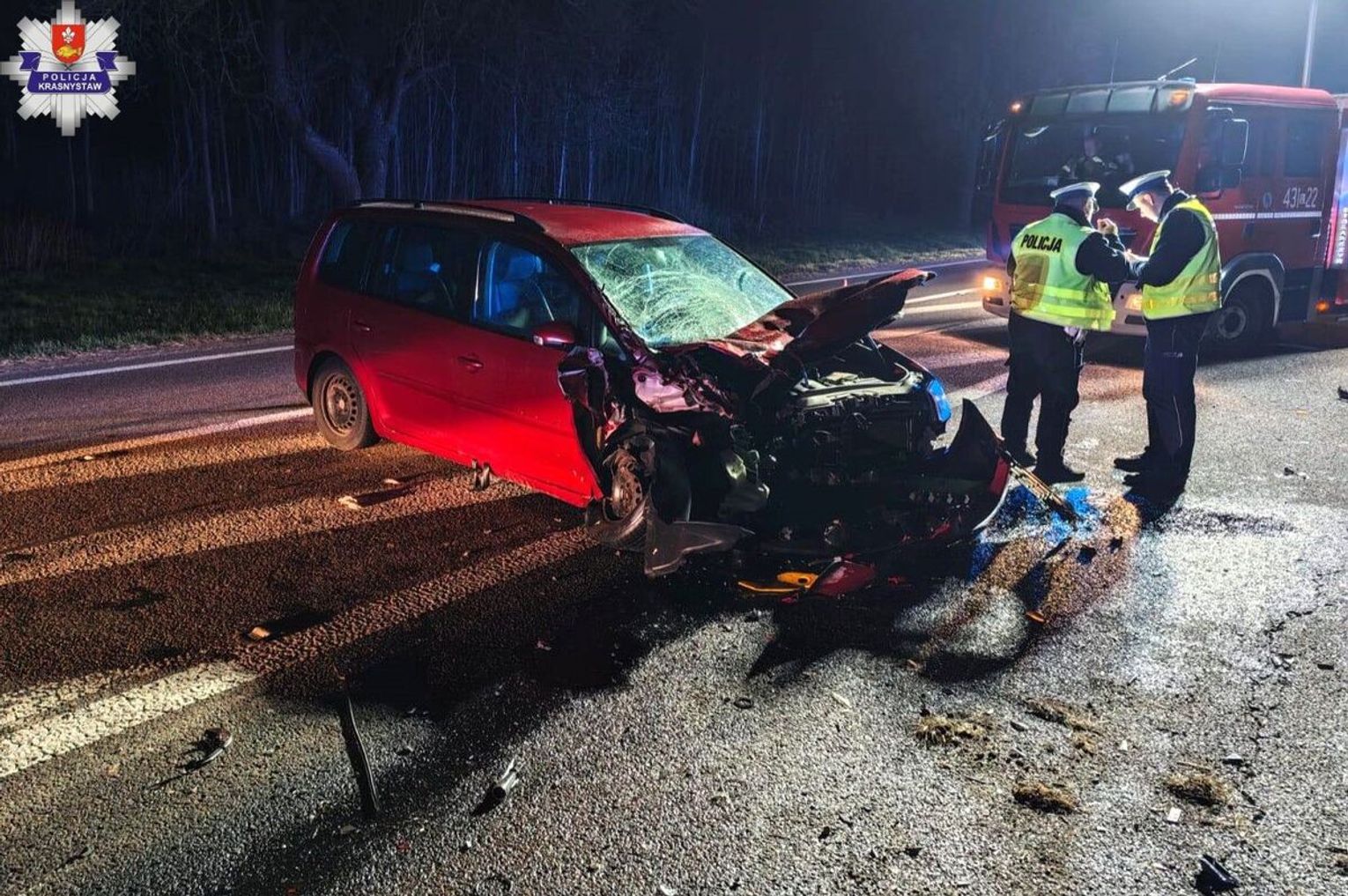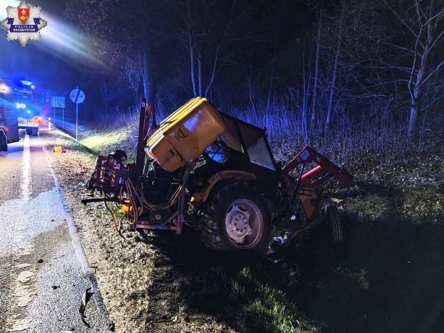 Do groźnie wyglądającego wypadku doszło wczorajszej nocy, około godziny 20:10. Na trasie prowadzącej przez powiat krasnostawski zderzyły się ze sobą dwa pojazdy: samochód osobowy i ciągnik rolniczy.