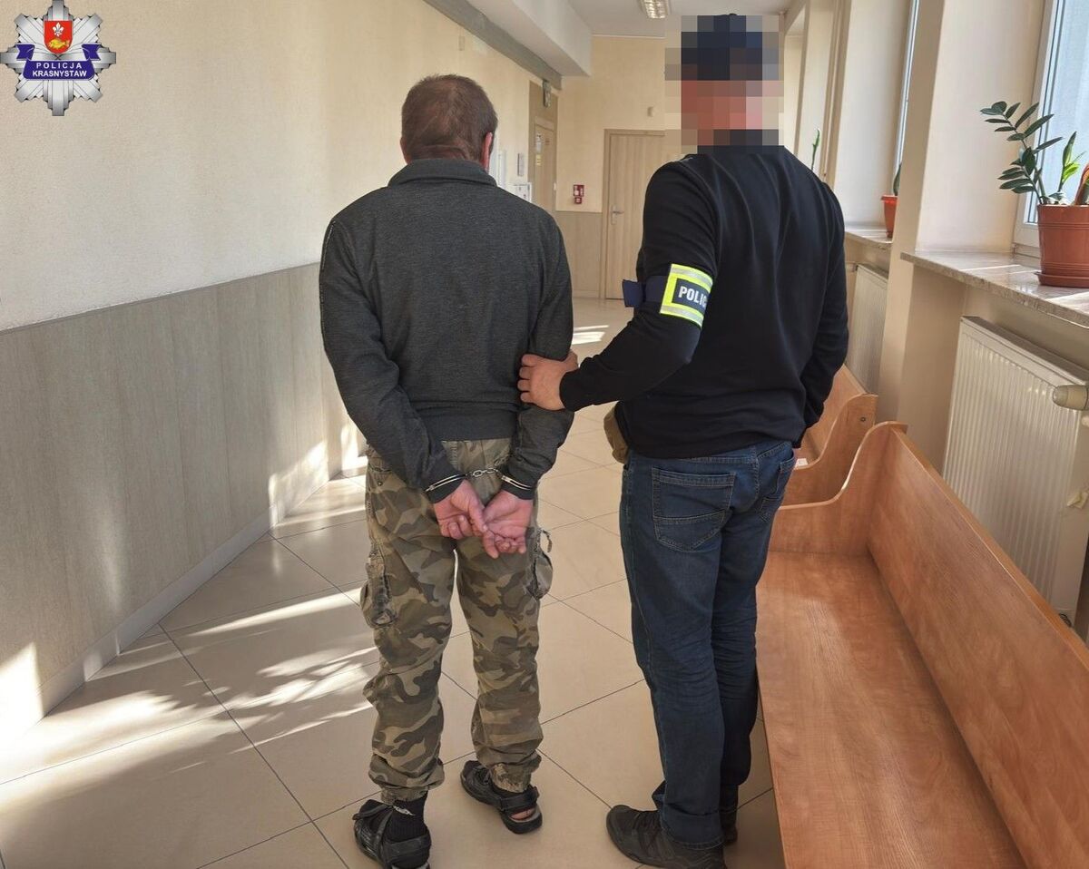 Drugi z zatrzymanych, 53-letni mieszkaniec tej samej gminy, jest podejrzany o znęcanie się nad swoją 29-letnią córką oraz jej dziećmi. Do zdarzeń miało dochodzić od stycznia 2025 roku do 21 kwietnia 2026 roku. Jak wynika z ustaleń funkcjonariuszy, mężczyzna pod wpływem alkoholu wszczynał awantury, wyzywał bliskich, szarpał ich i wyrzucał z domu. W jednym z przypadków miał uderzyć córkę pięścią w twarz i ją dusić, a wcześniej również dopuścić się przemocy wobec jednego z dzieci.