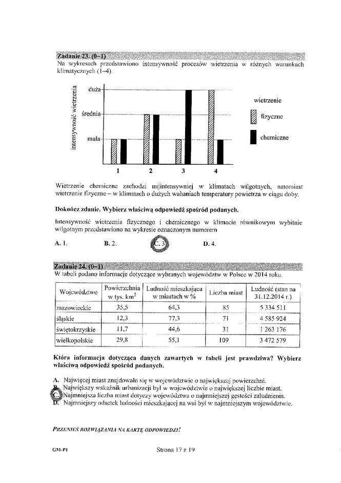 Egzamin gimnazjalny 2017. Odpowiedzi z części przyrodniczej
