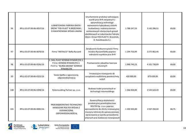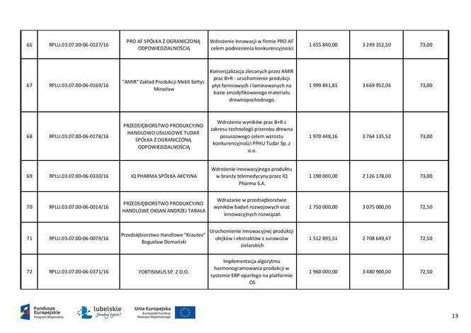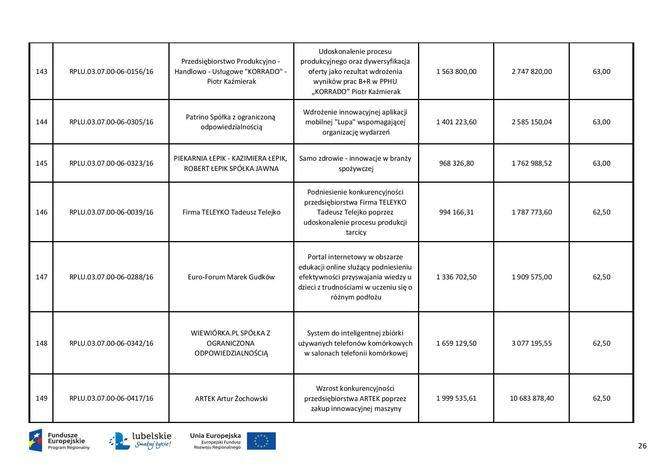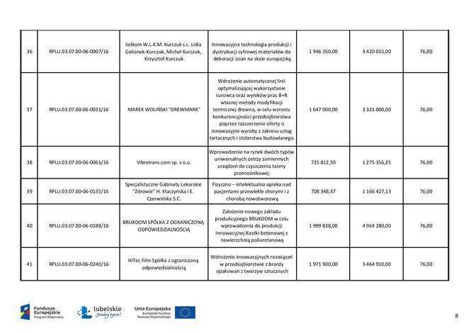 Pieniądze unijne dla przedsiębiorstw - lista dofinansowanych...