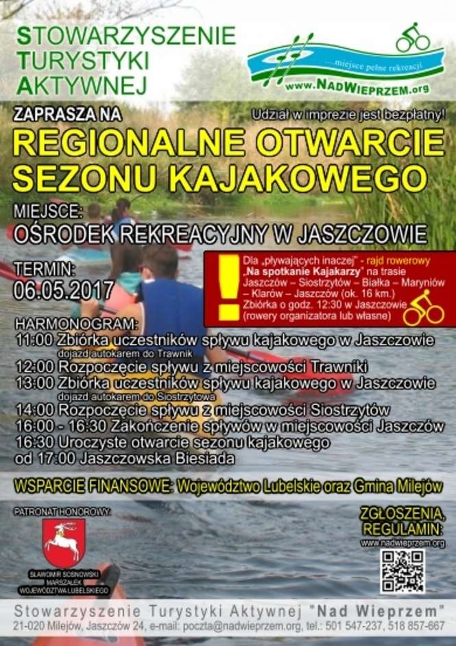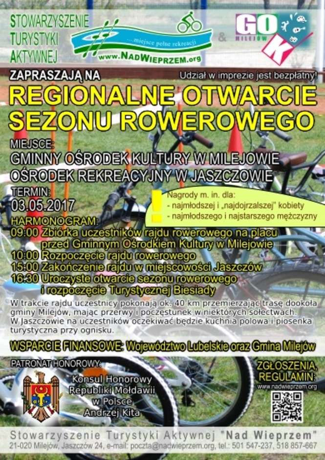 O godz. 9 ruszy rajd rowerowy dookoła gminy. Na 40-kilometrowym dystansie przewidziano przerwy i poczęstunek. W Jaszczowie będzie mogli pokrzepić się posiłkiem z kuchni polowej i posłuchać piosenki turystycznej przy ognisku. Organizatorzy przewidzieli nagrody między innymi dla najmłodszej i „najdojrzalszej” kobiety czy najmłodszego i najstarszego mężczyzny. Szczegóły na www.nadwieprzem.org