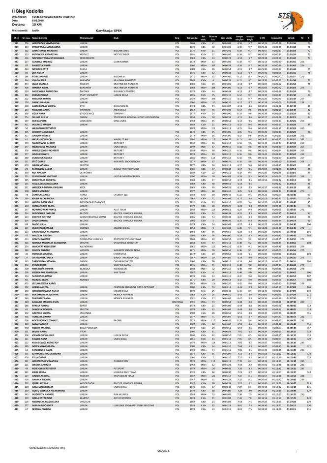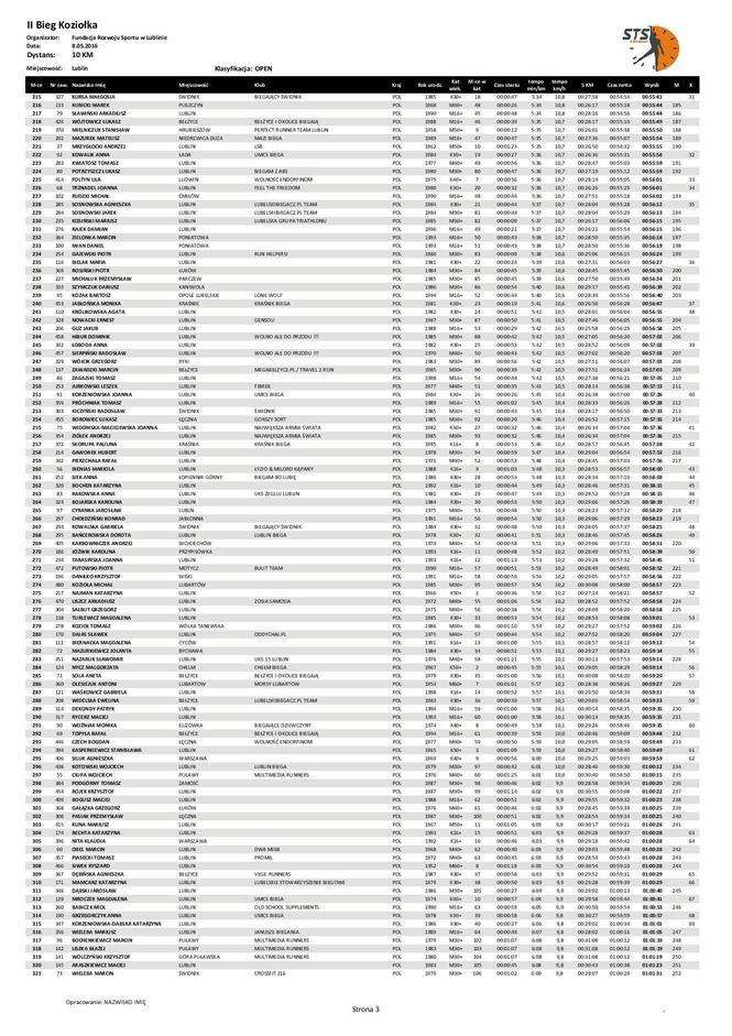 Bieg Koziołka - wyniki
