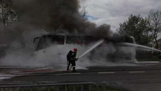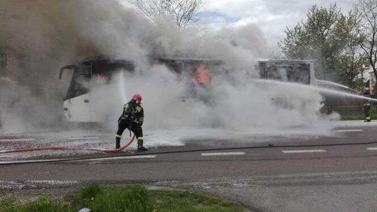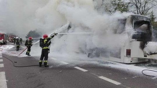 Pożar autokaru w Fajsławicach