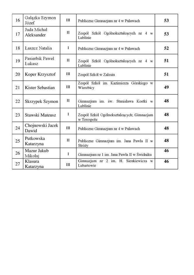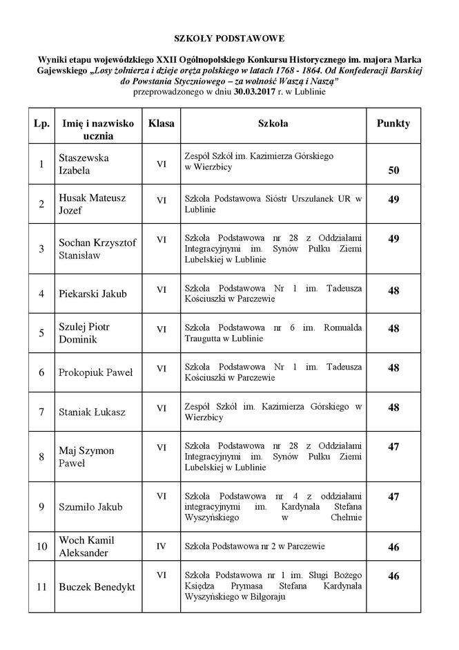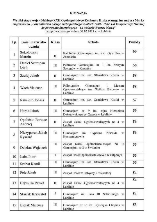 Losy żołnierza i dzieje oręża polskiego - wyniki konkursu