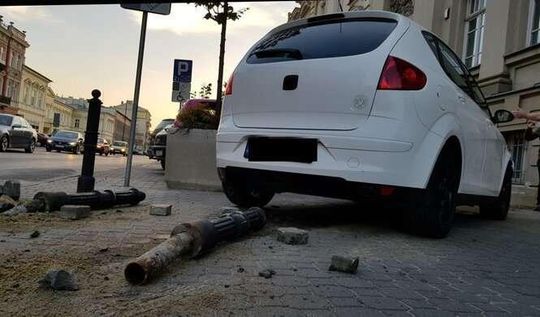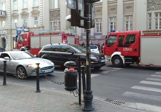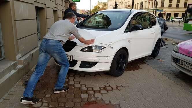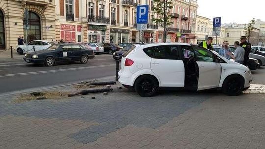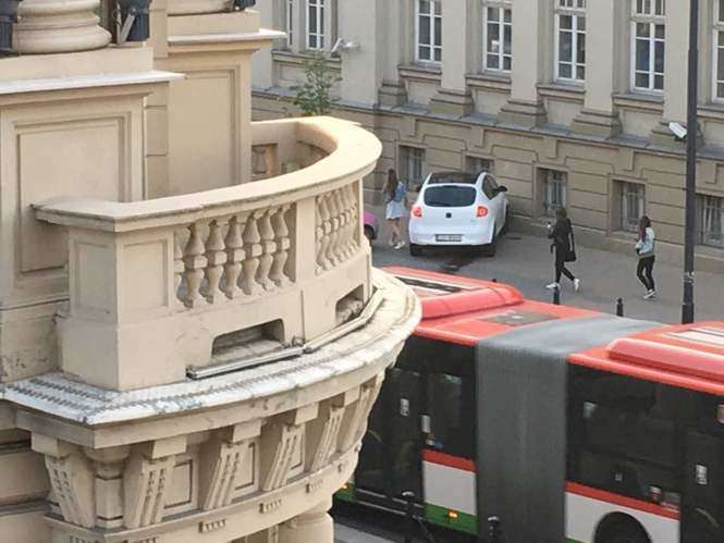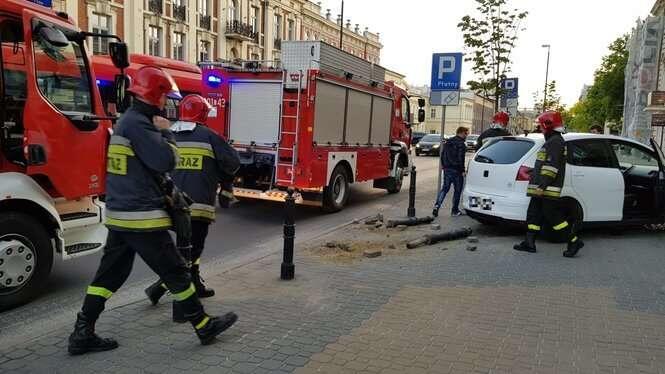 Kobieta wjechała w bank przy Krakowskim Przedmieściu