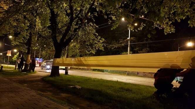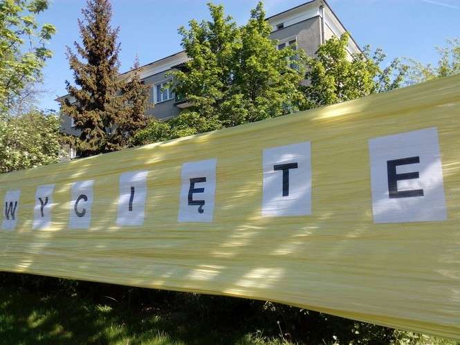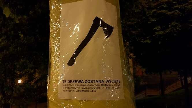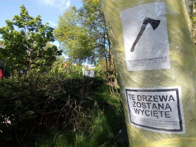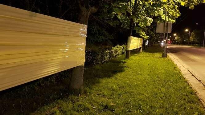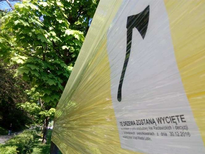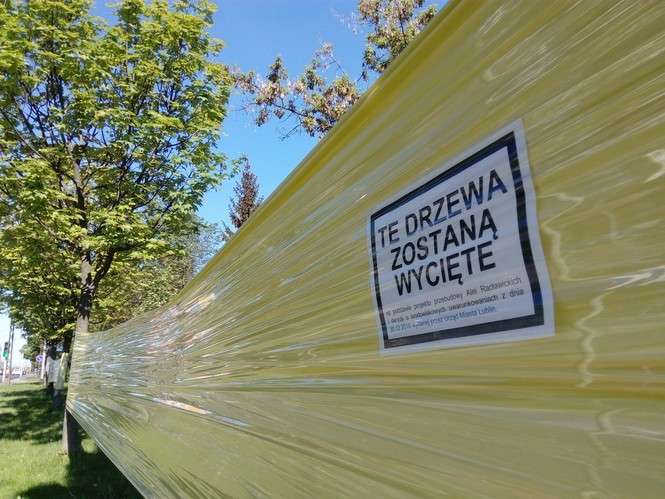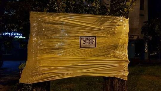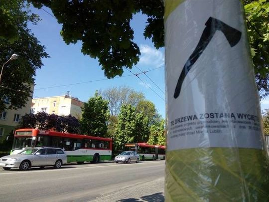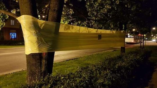 Oklejone drzewa wzdłuż Al. Racławickich