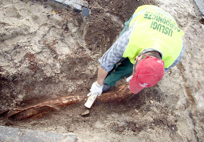 Ratowanie Baobabu w 2008 r. Fachowcy odkopali korzenie, a później ułożyli instalację doprowadzającą wodę i powietrze