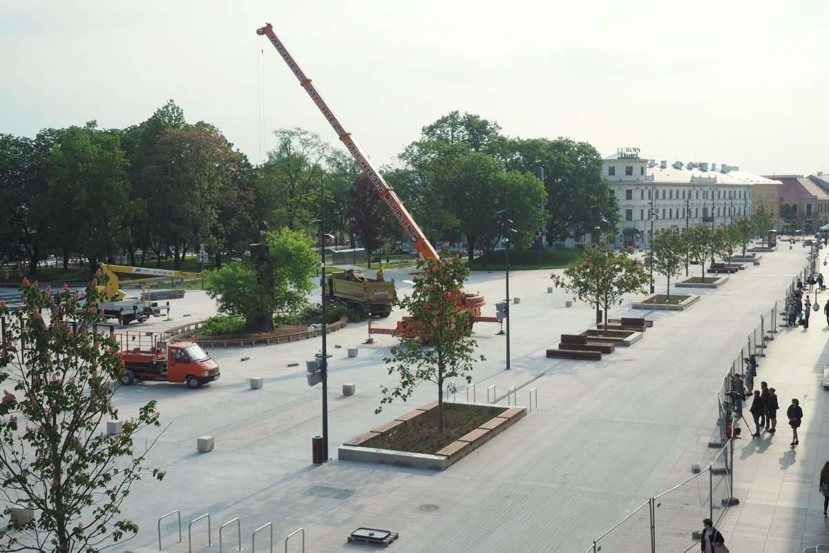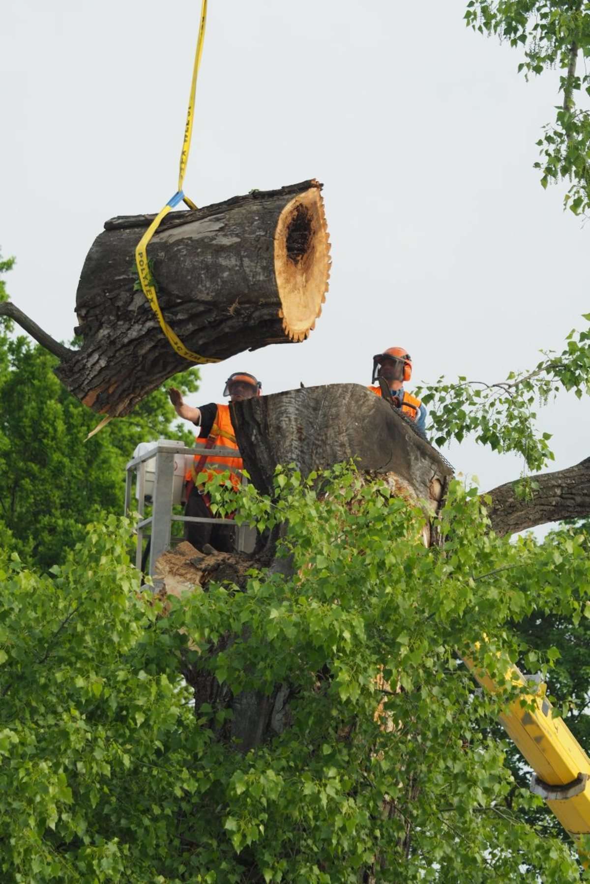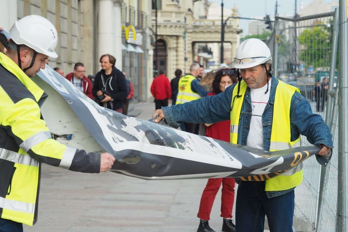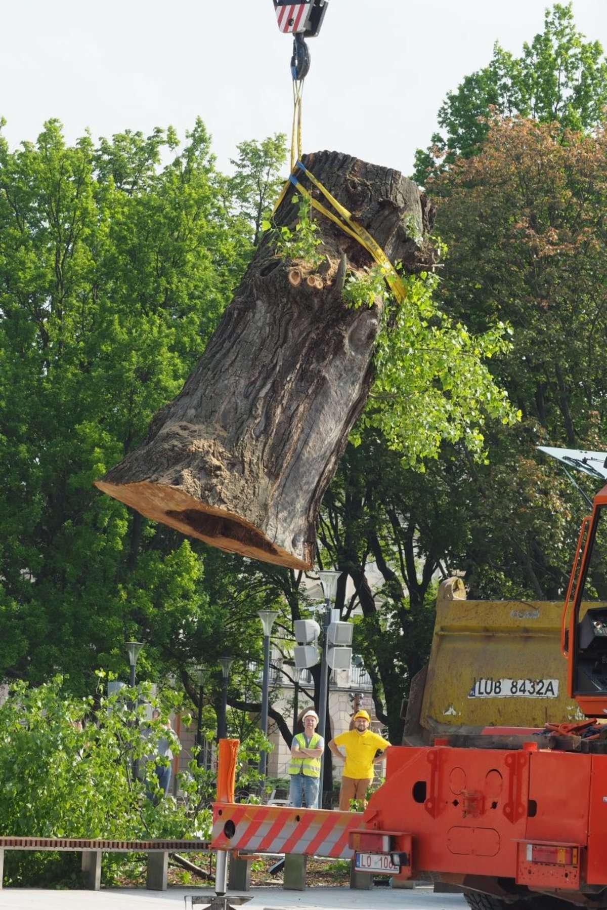 Nieco ponad 2,5 godziny trwała operacja usunięcia z pl. Litewskiego przeszło 120-letniej topoli czarnej zwanej zwyczajowo Baobabem. Całą operację obserwowały zza ogrodzenia grupy przechodniów i osób, które przyszły specjalnie po to by pożegnać się z drzewem. Fot. Maciej Kaczanowski