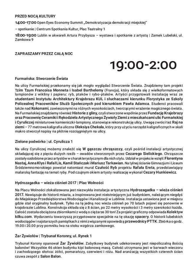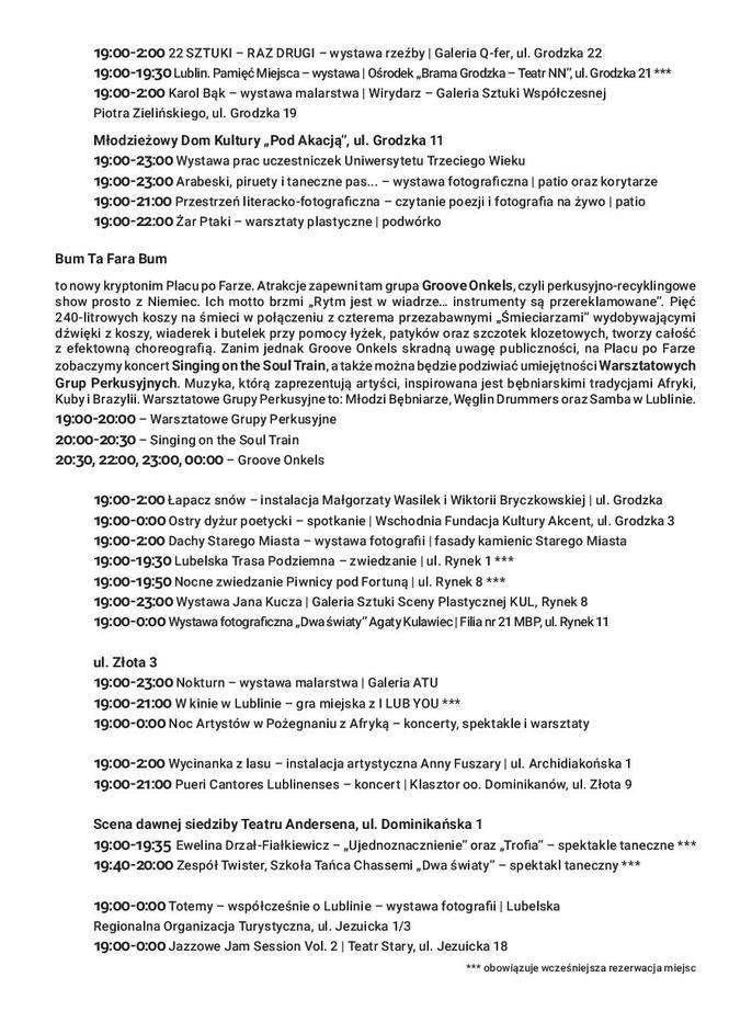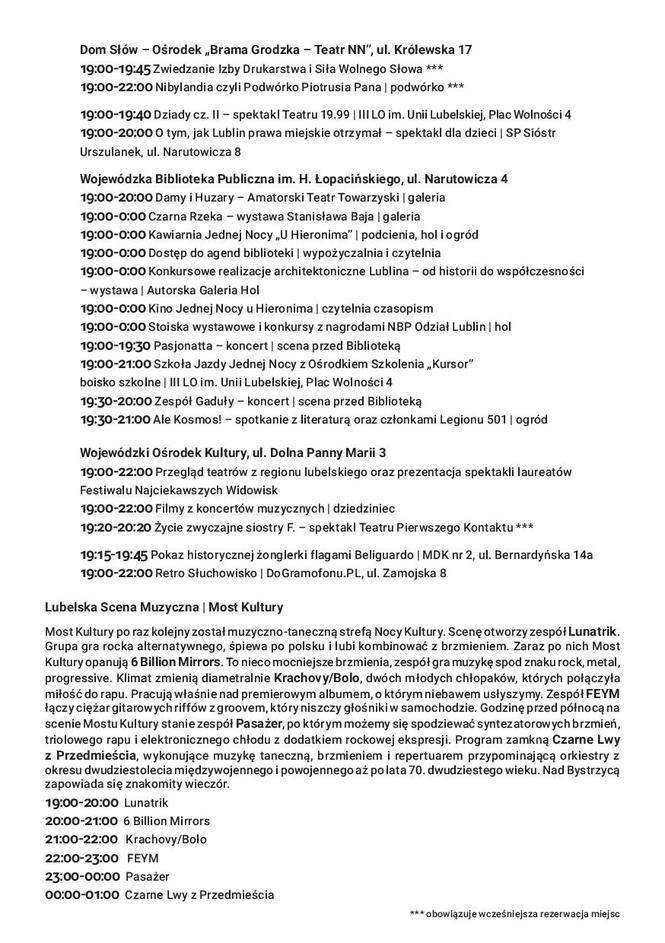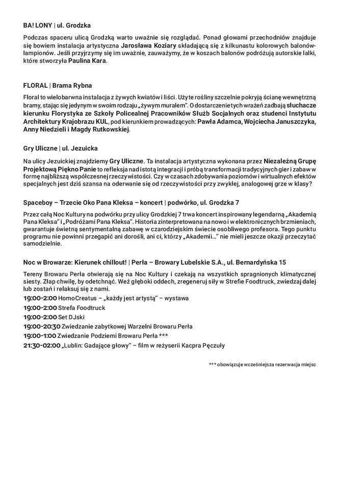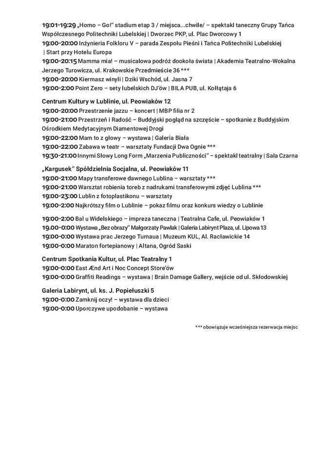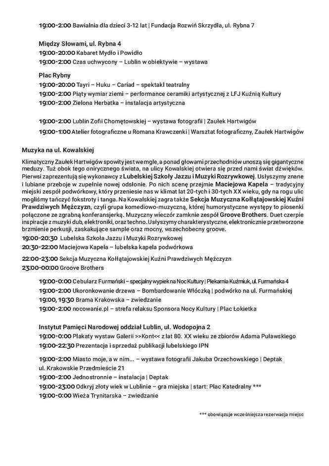 Noc Kultury 2017 w Lublinie: Pełny program godzina po godzinie