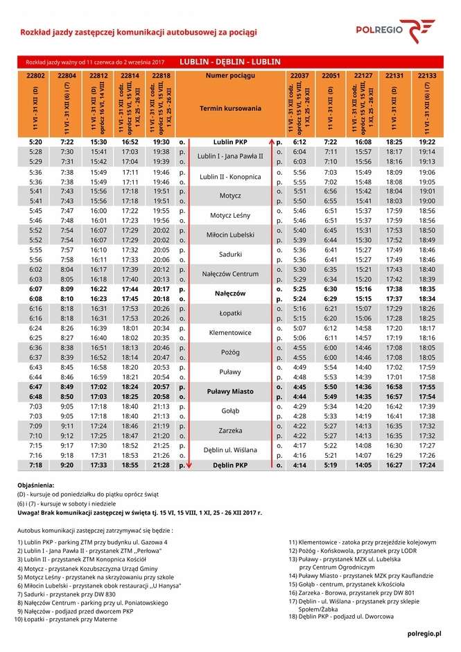 Zastępcza komunikacja autobusowa na trasie Lublin - Dęblin