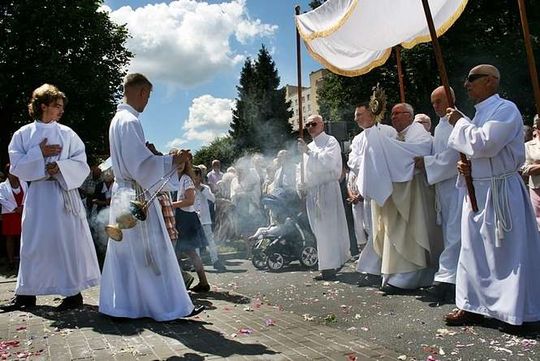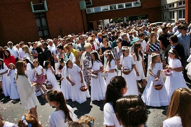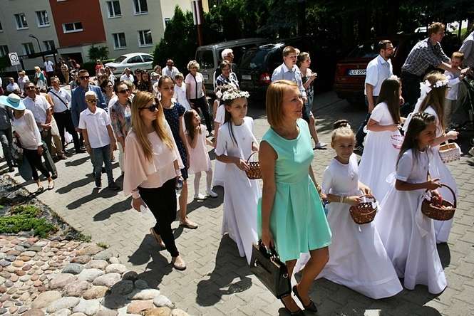 Boże Ciało. Procesja w parafii pw. św. Andrzeja Boboli w Lub...
