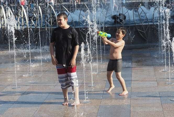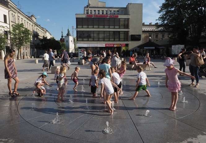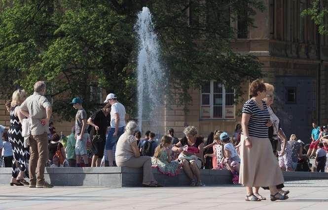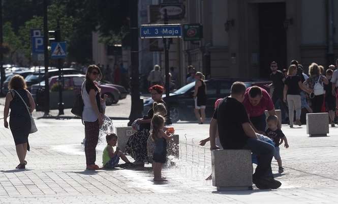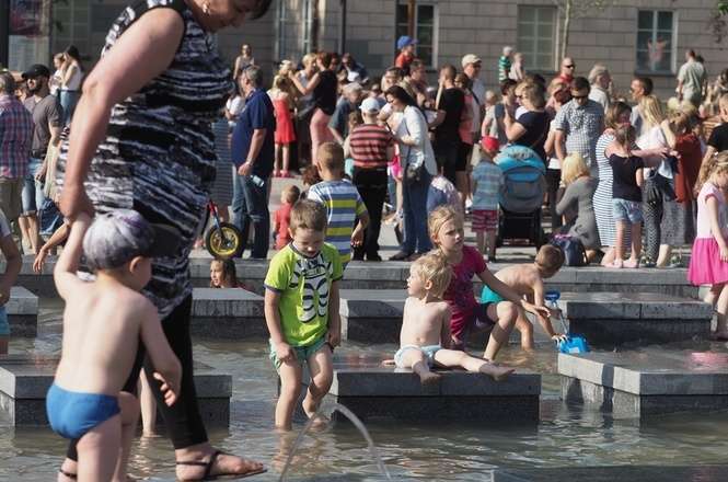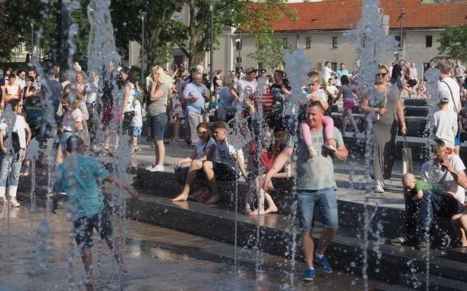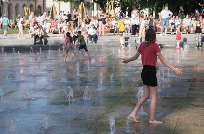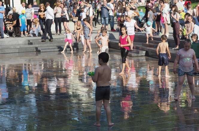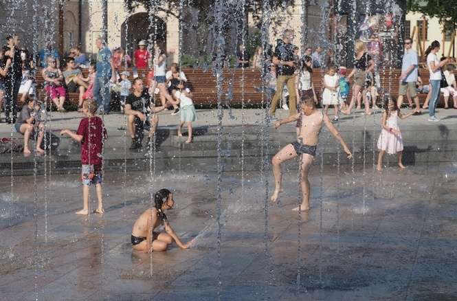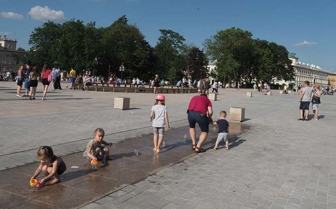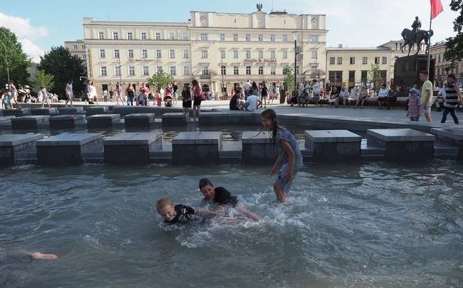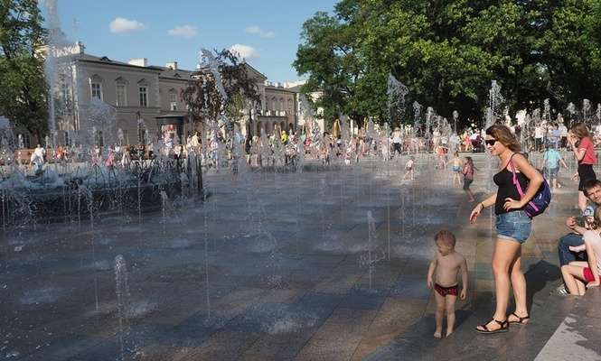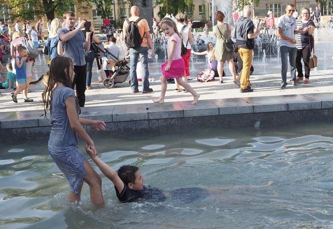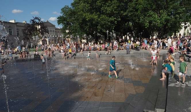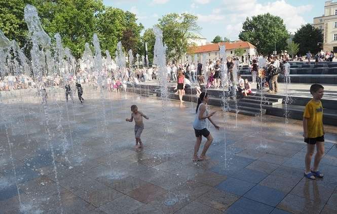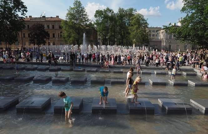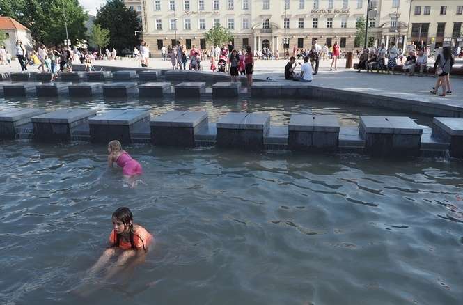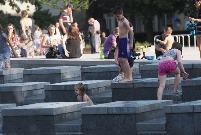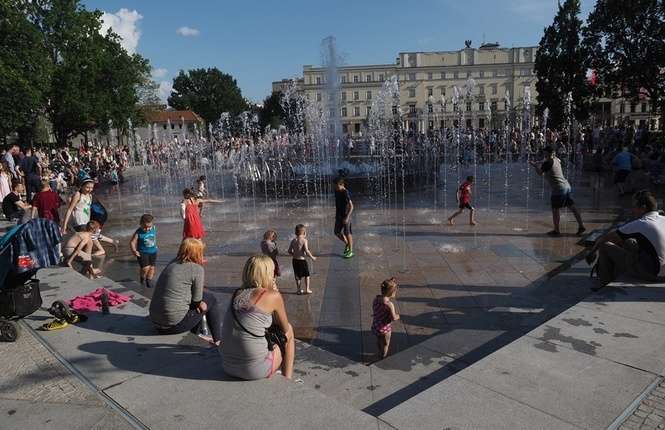 Nowa fontanna na placu Litewskim. Kąpiele i zabawa