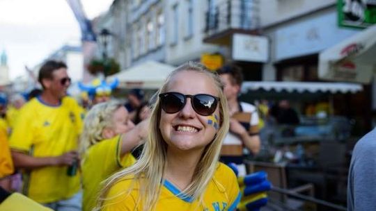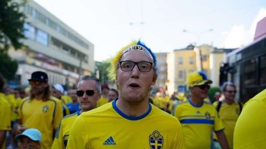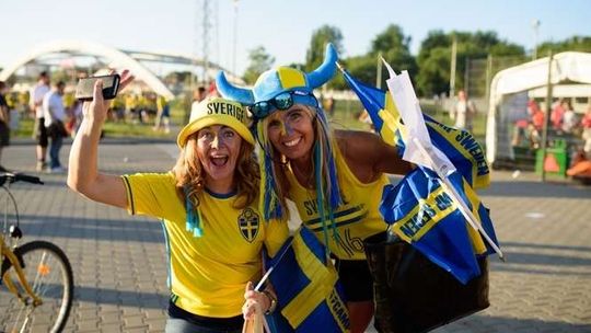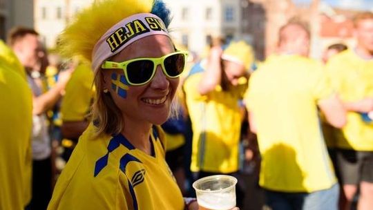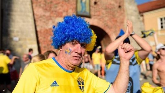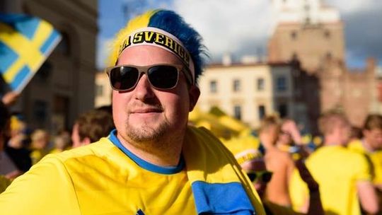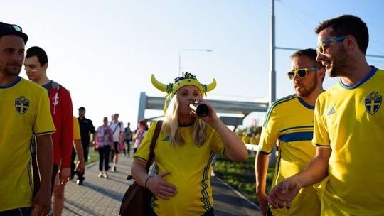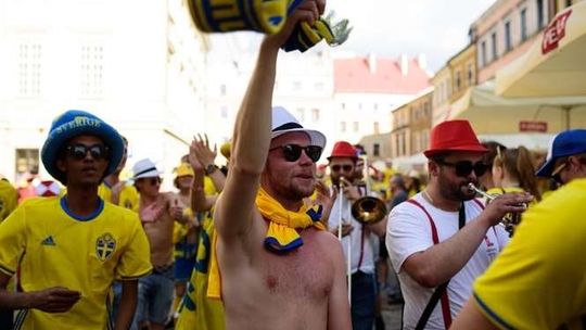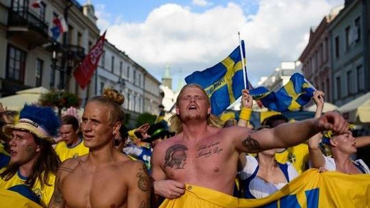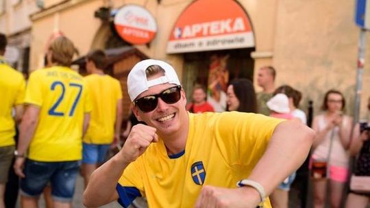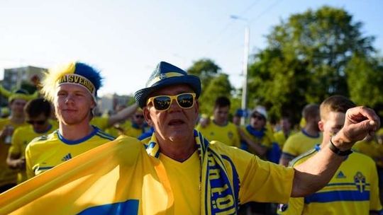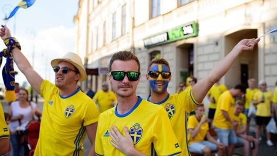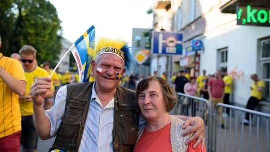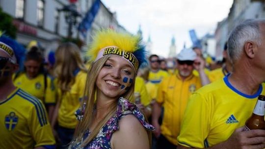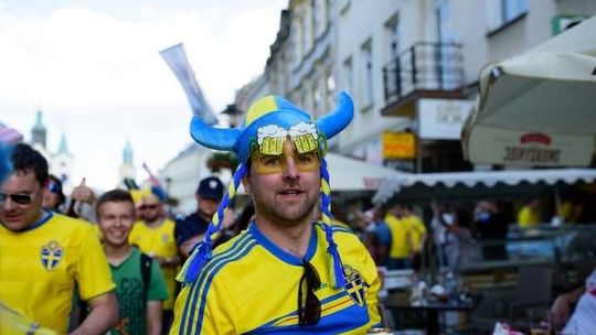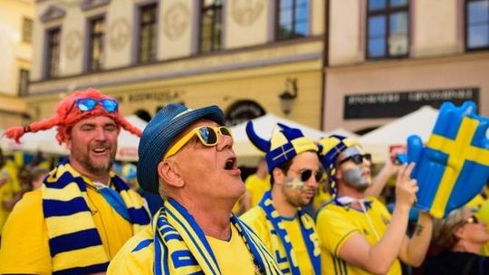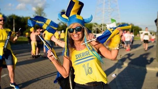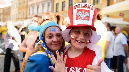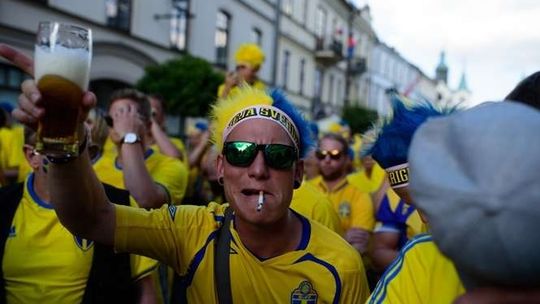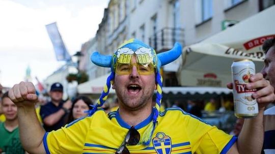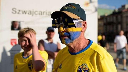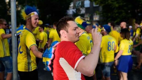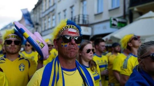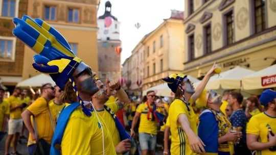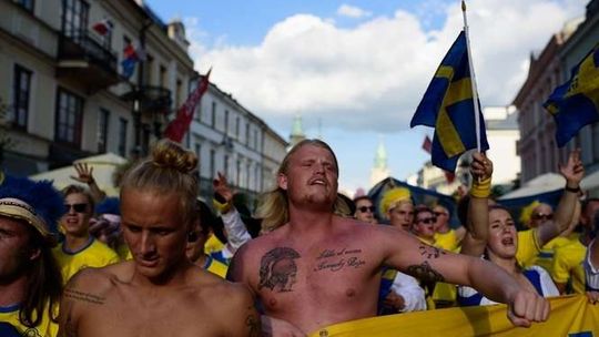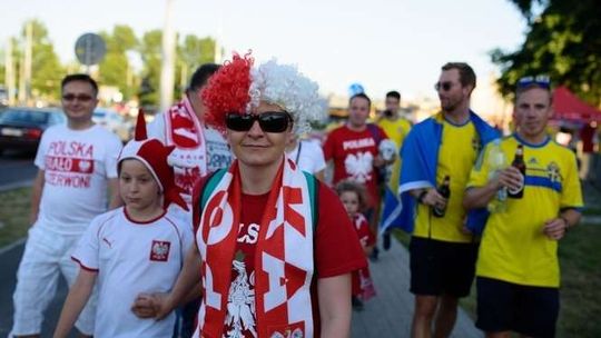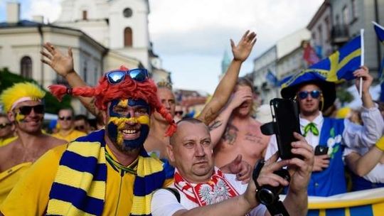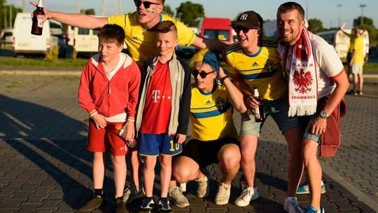 Kibice Szwecji i Polski przed meczem
