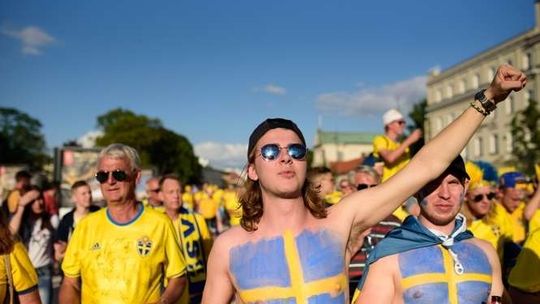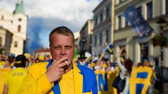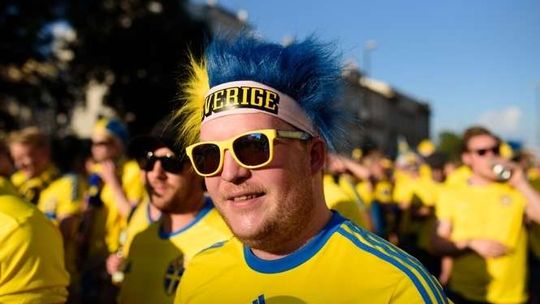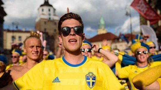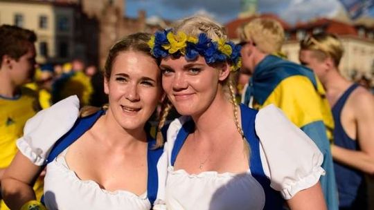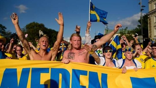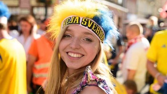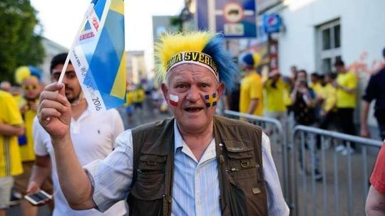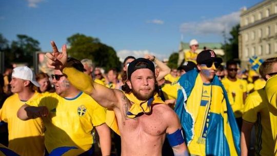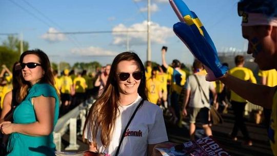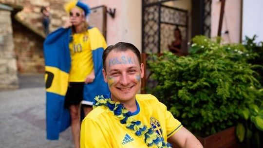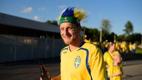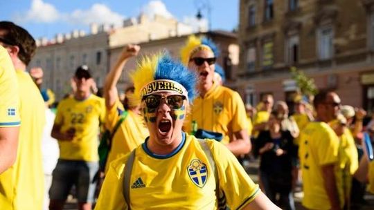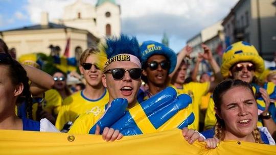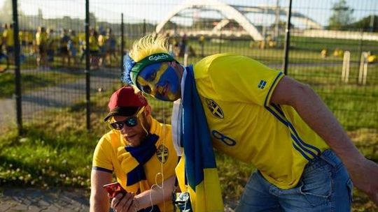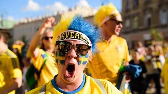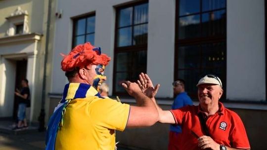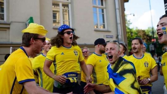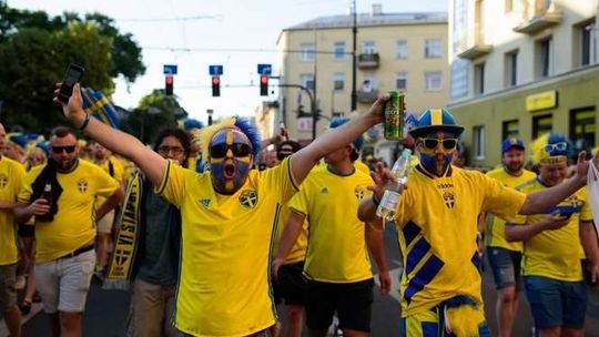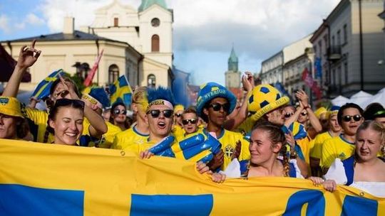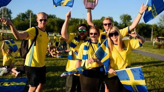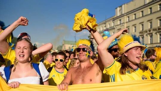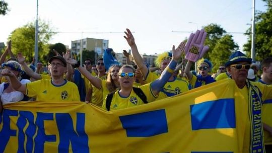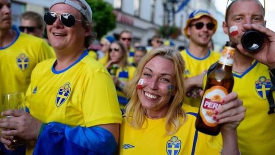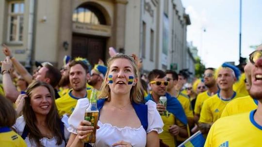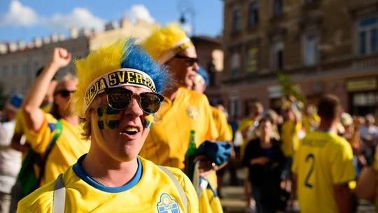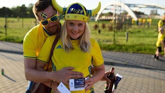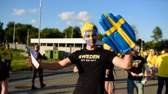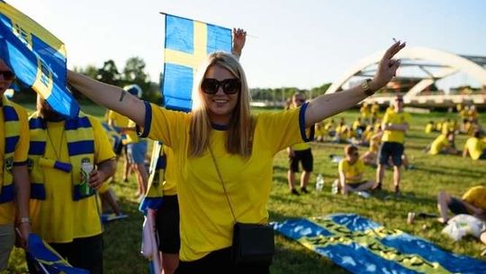 Kibice Szwecji i Polski przed meczem
