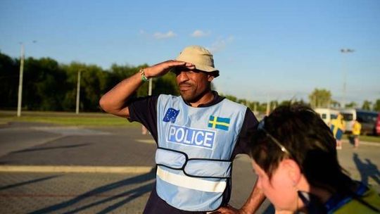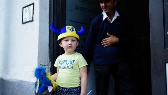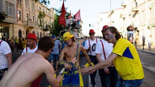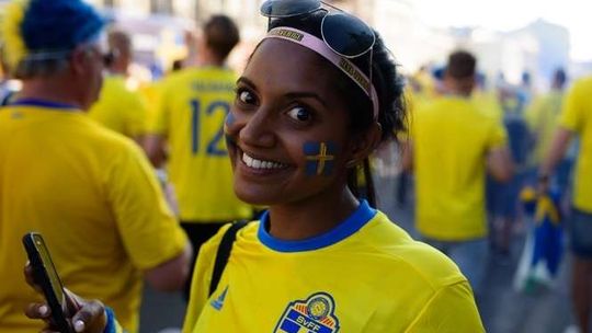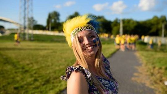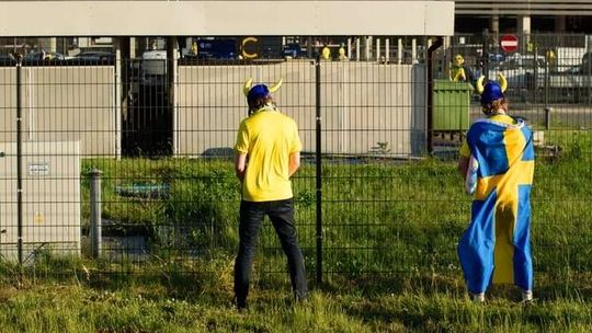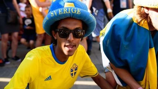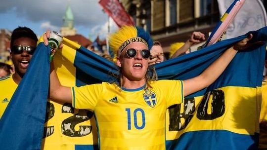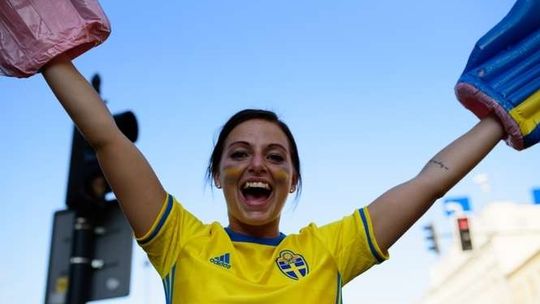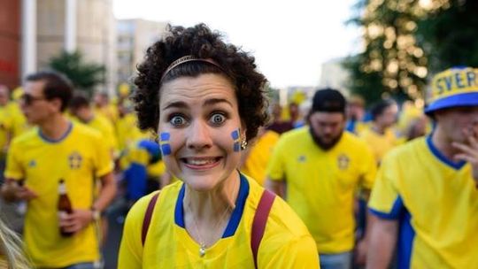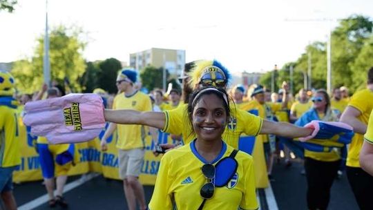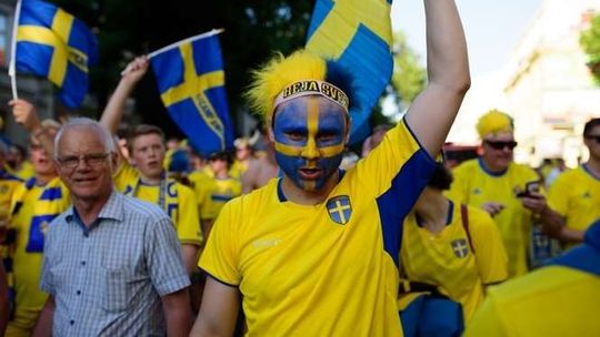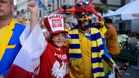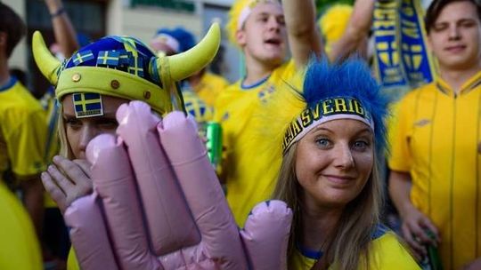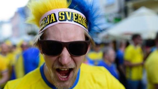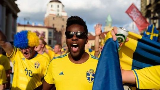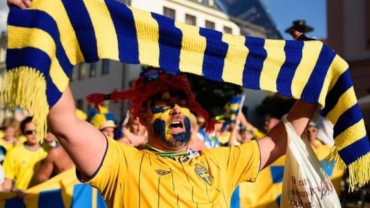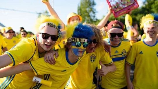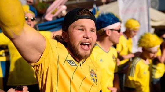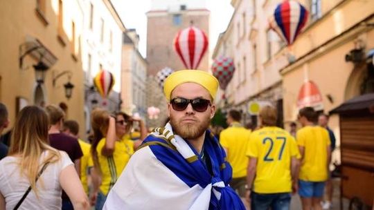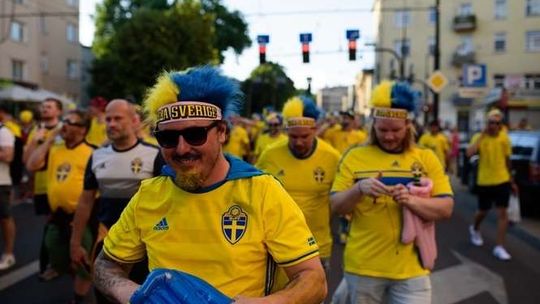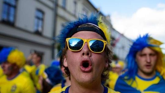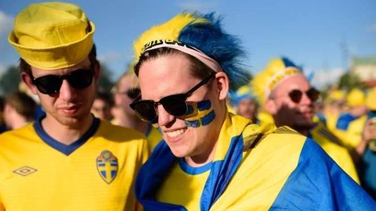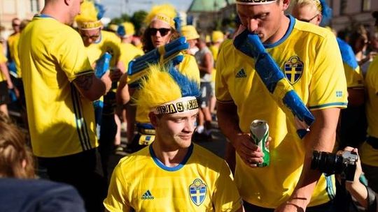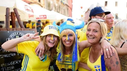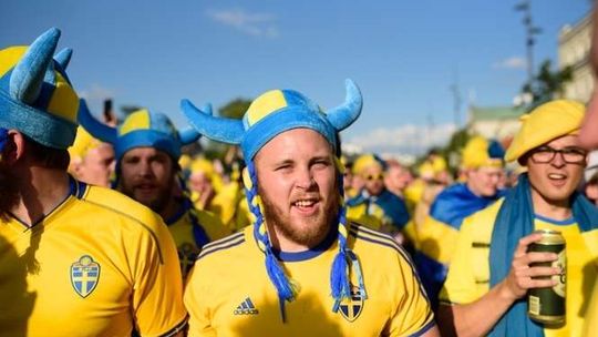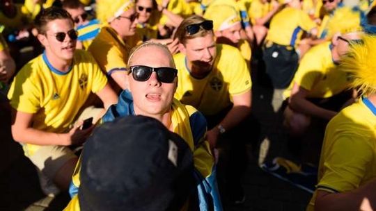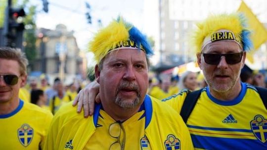 Kibice Szwecji i Polski przed meczem