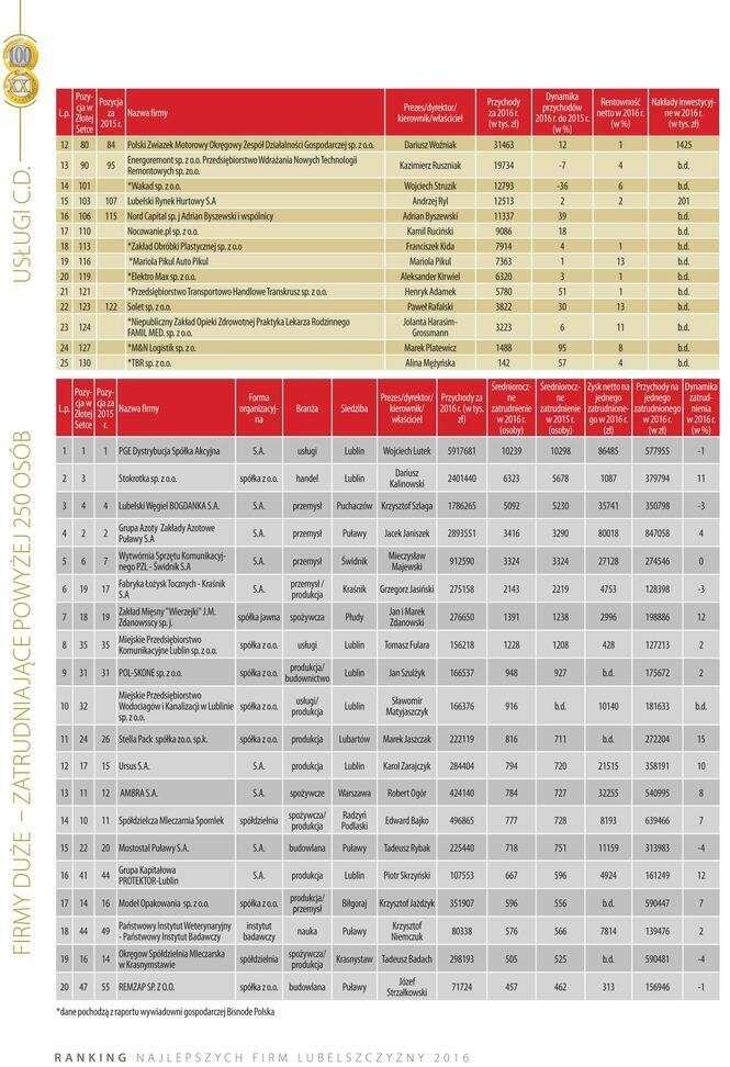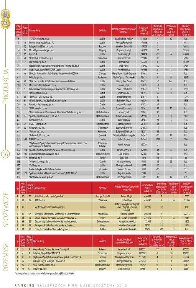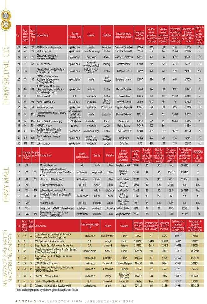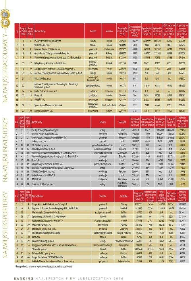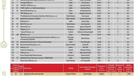 Złota Setka. Ranking największych lubelskich firm w 2016 r....
