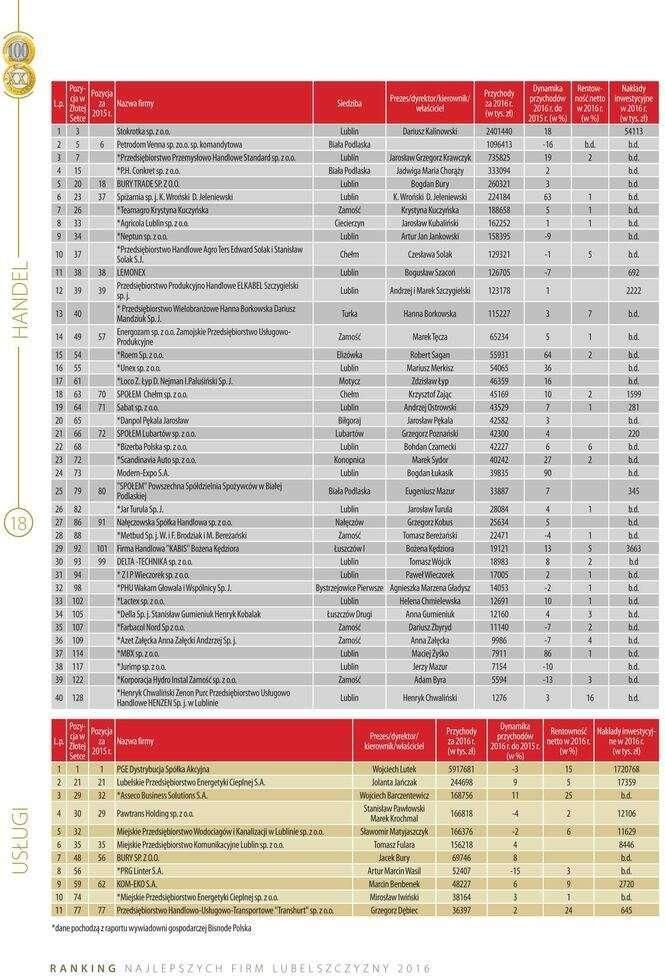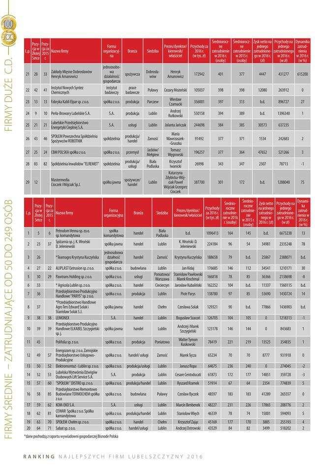 Złota Setka. Ranking największych lubelskich firm w 2016 r. (CD)