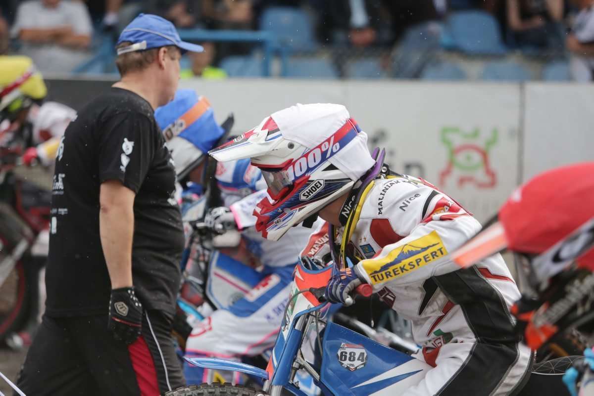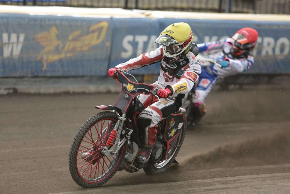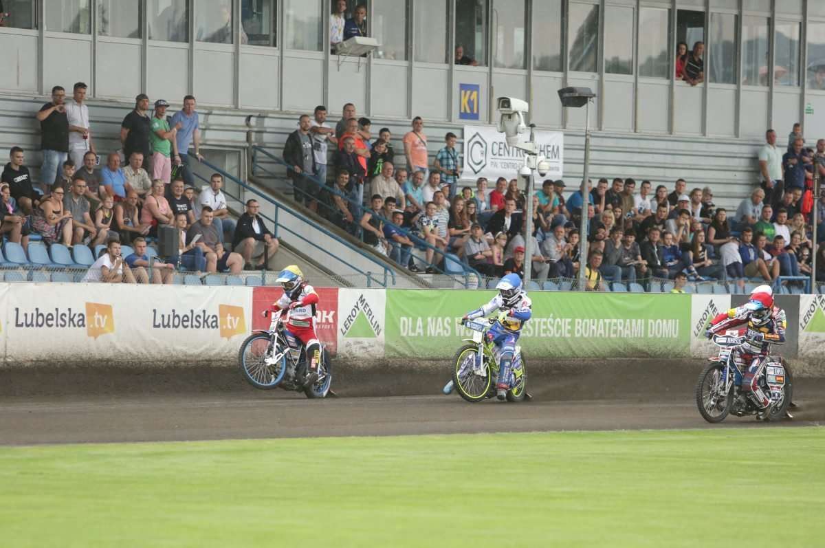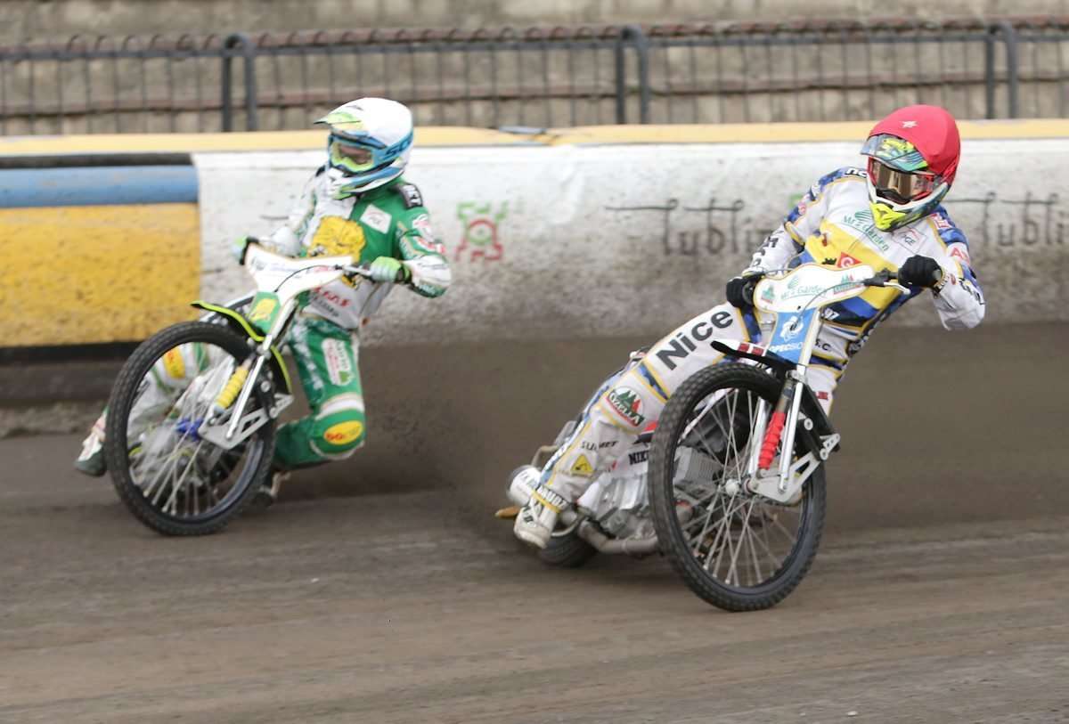 Na torze przy Al. Zygmuntowskich zostały rozegrane zawody I rundy półfinałowej Drużynowych Mistrzostw Polski Juniorów. Kibice mogli zobaczyć w akcji dwóch zawodników Speed Car Motoru Lublin. Fot. Maciej Kaczanowski