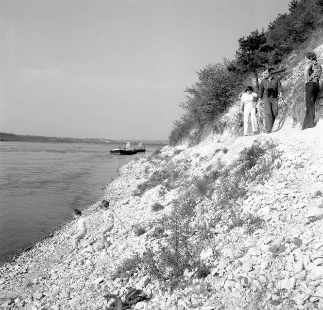 W Kazimierzu były dwie plaże, które najczęściej odwiedzali turyści. Jedna z nich znajdowała się u wylotu ulicy Nadwiślańskiej, czyli tu, gdzie dziś cumują statki pasażerskie. Była to wyspa, którą od lądu oddzielał szeroki pas płytkiej wody. Z czasem pojawiły się na niej kosze plażowe, przebieralnie, wypożyczalnia kajaków i rowerów wodnych. Była też i motorówka milicji wodnej