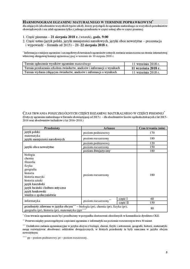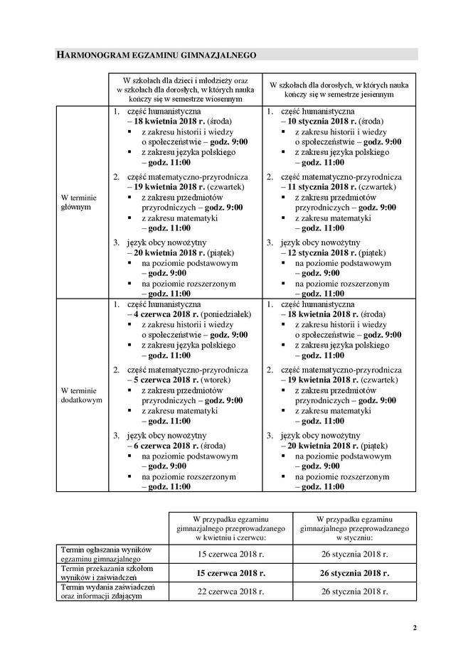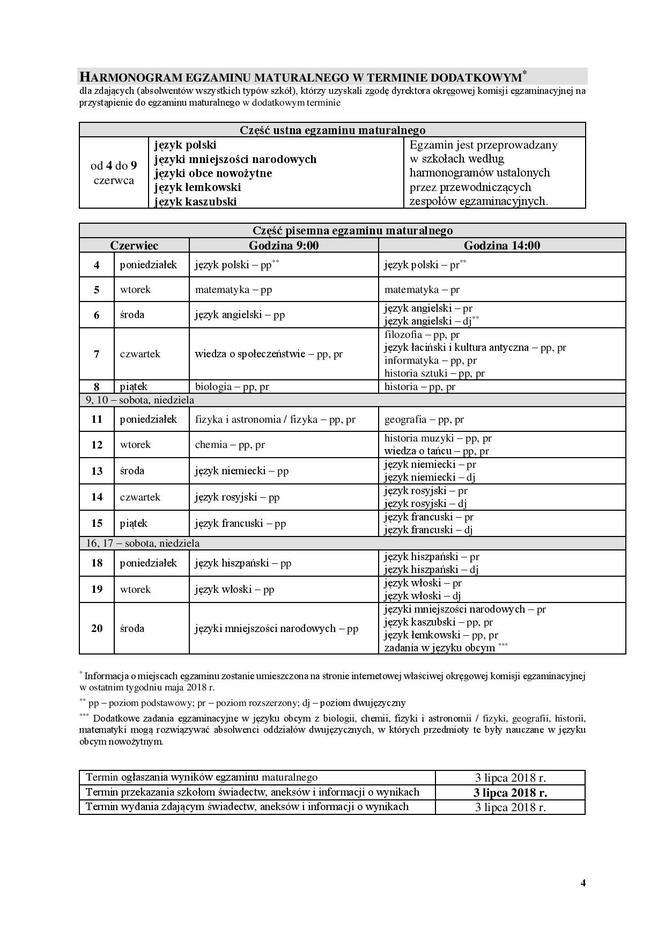 Egzamin gimnazjalny 2018, matura 2018 - terminy