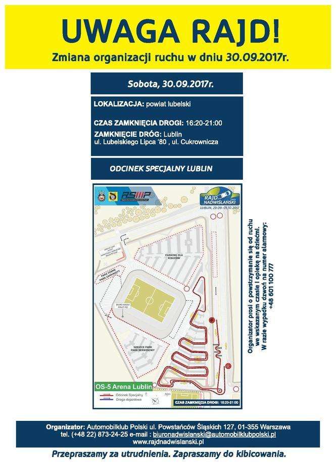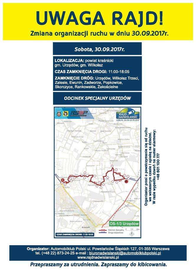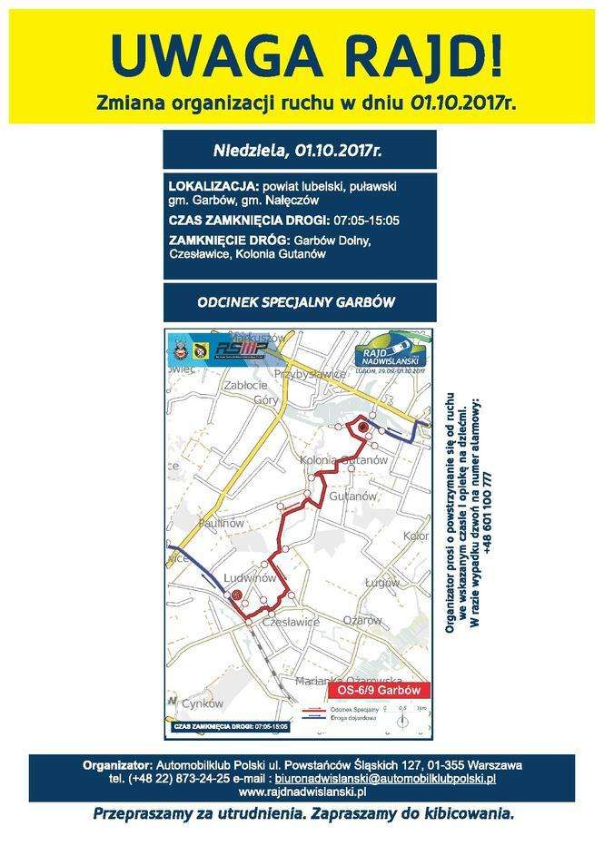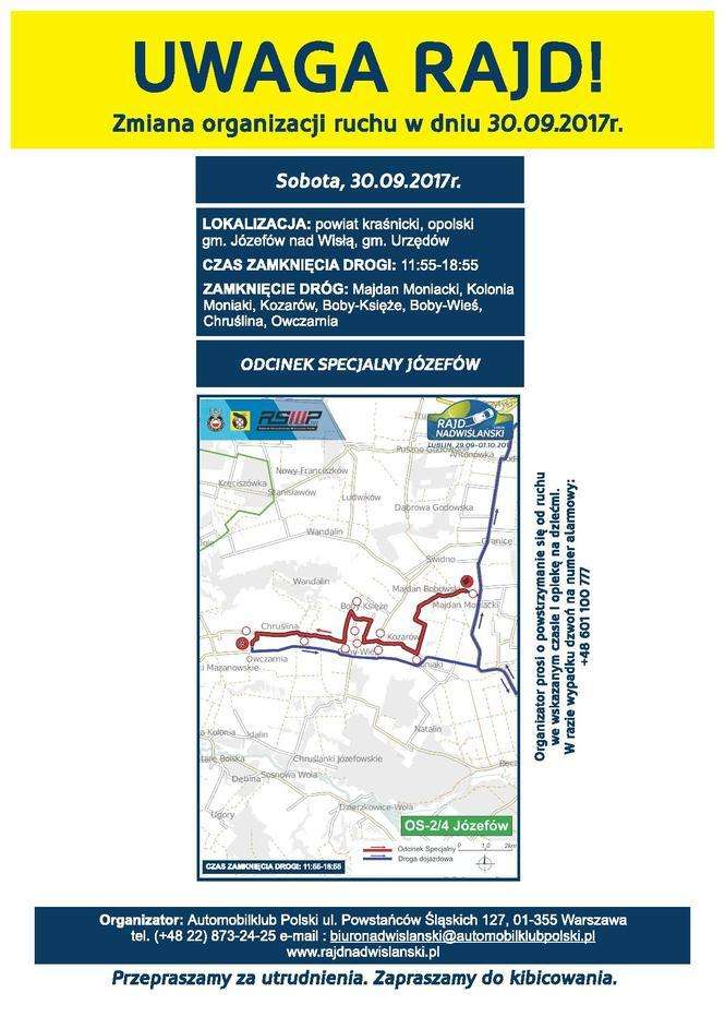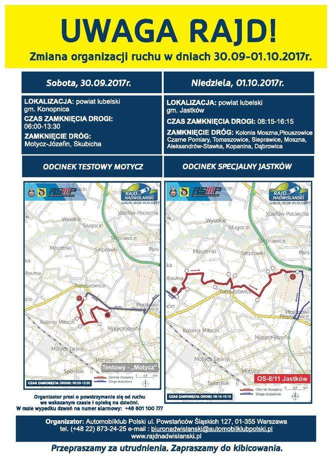Rajd Nadwiślański 2017 - zmiany organizacji ruchu w dniach 30.09-01.10.2017