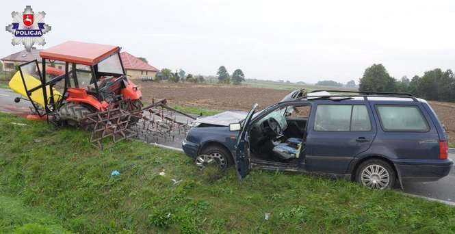 Zderzenie samochodu osobowego i traktora