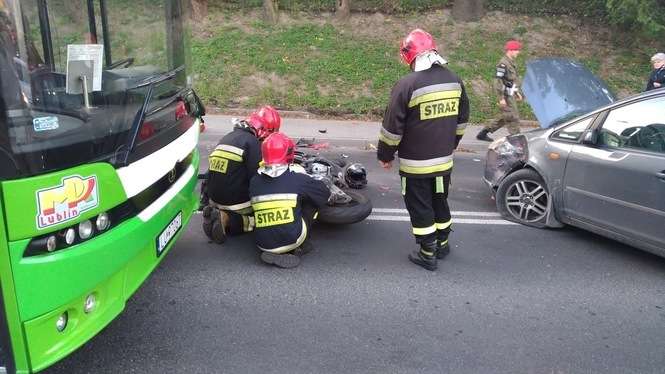Wypadek na ul. 3 Maja w Lublinie. Motocyklista zderzył się z samochodem