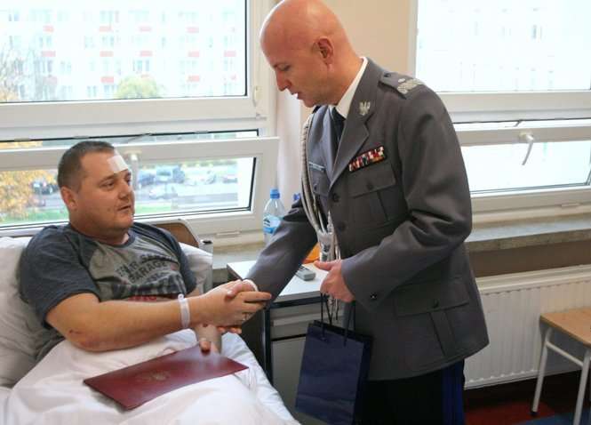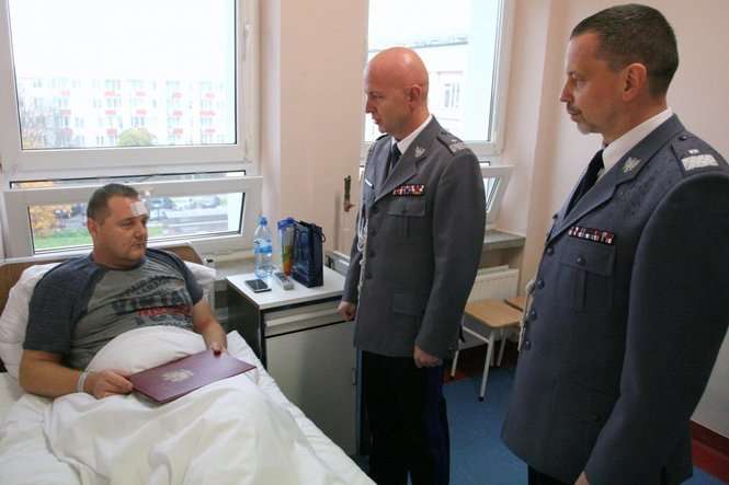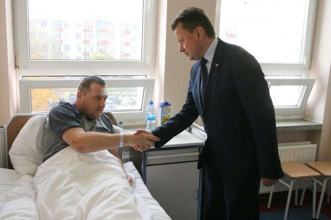 Wypadek w Łopienniku Dolnym. Minister odwiedził w szpitalu rannego policjanta