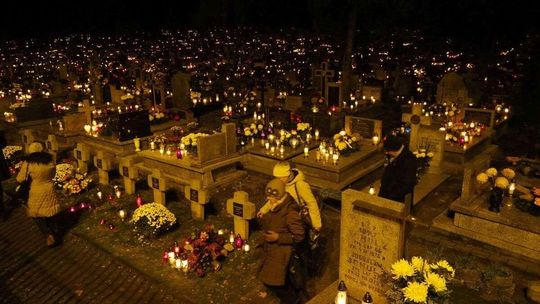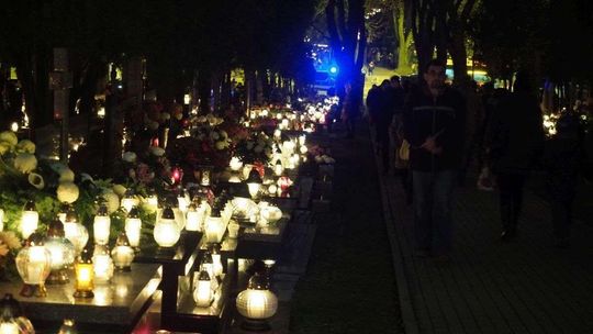 Wszystkich Świętych w Lublinie: Cmentarz przy ul. Unickiej wieczorem
