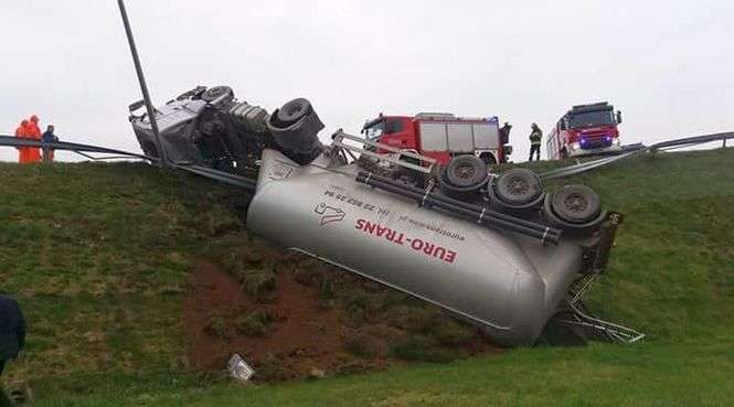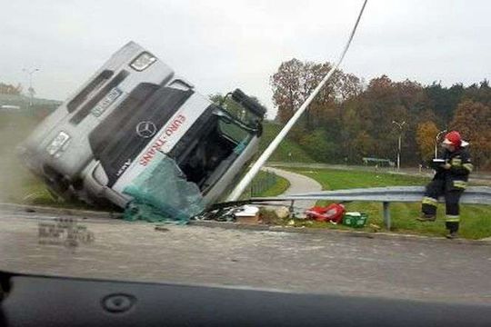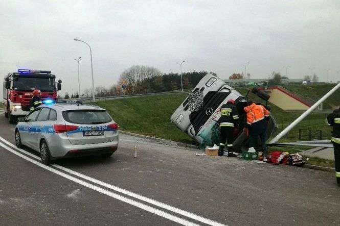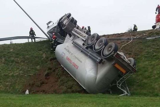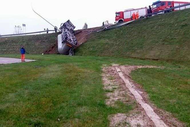 Bronowice: Ciężarówka spadła z nasypu na obwodnicy