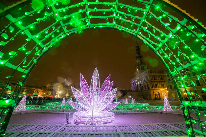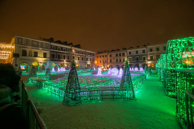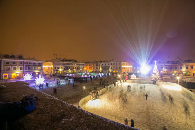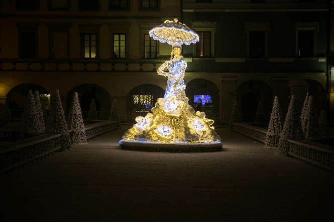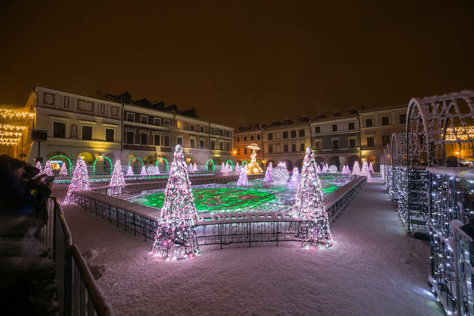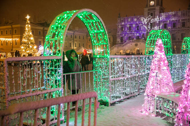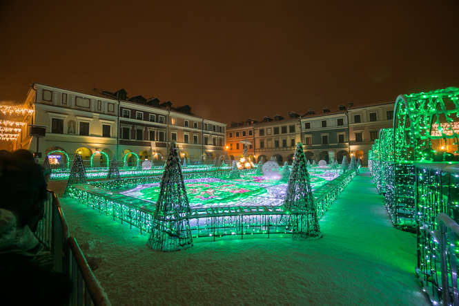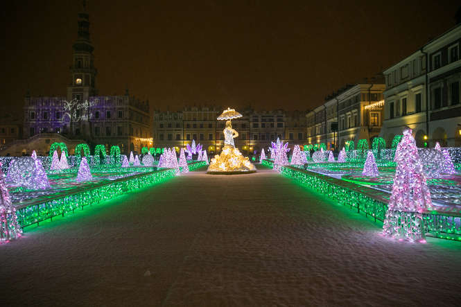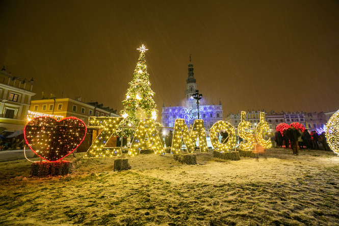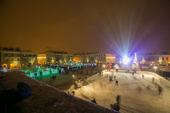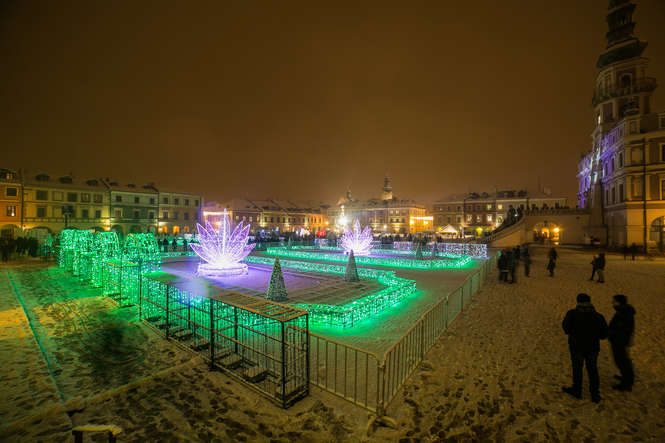 Zima i iluminacje na Rynku Wielkim w Zamościu