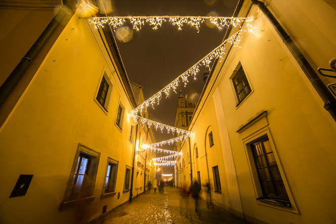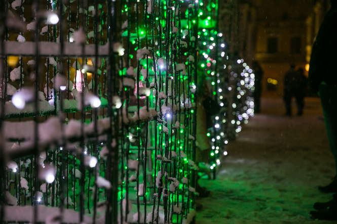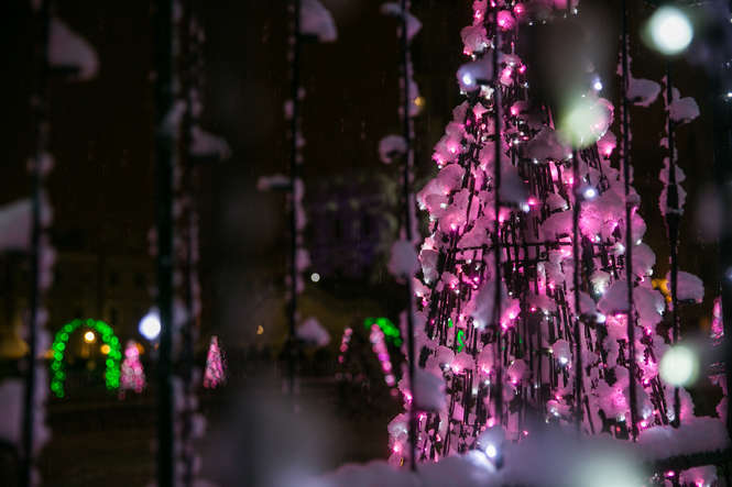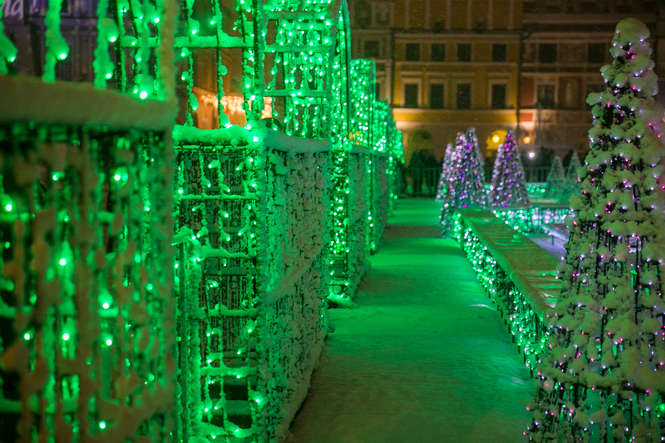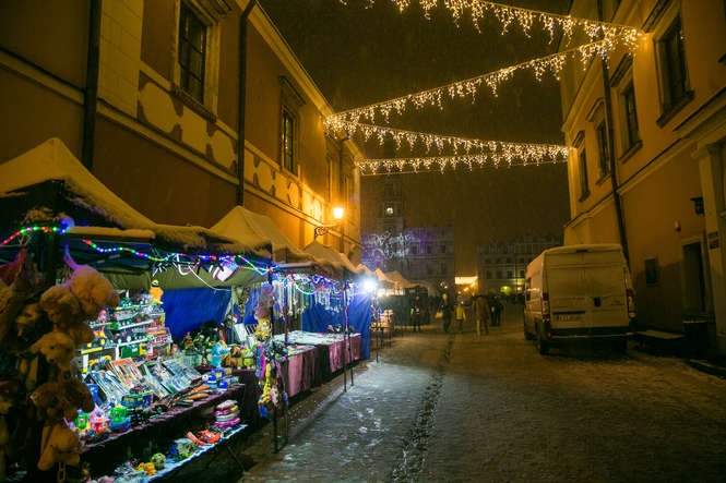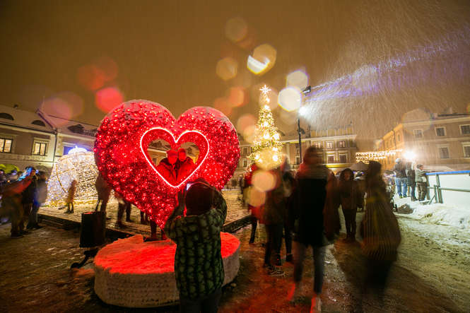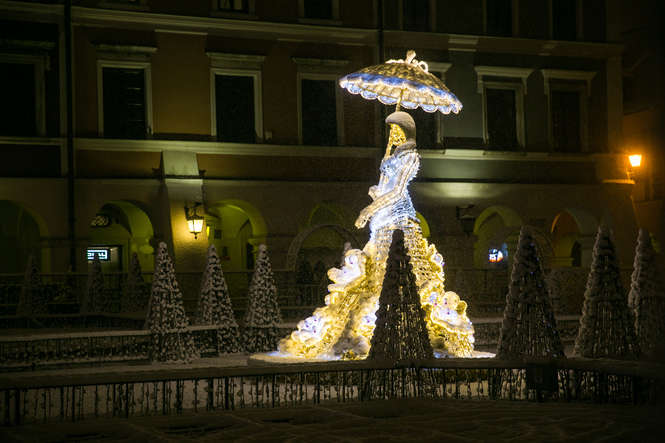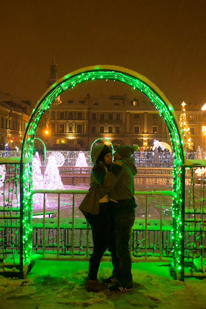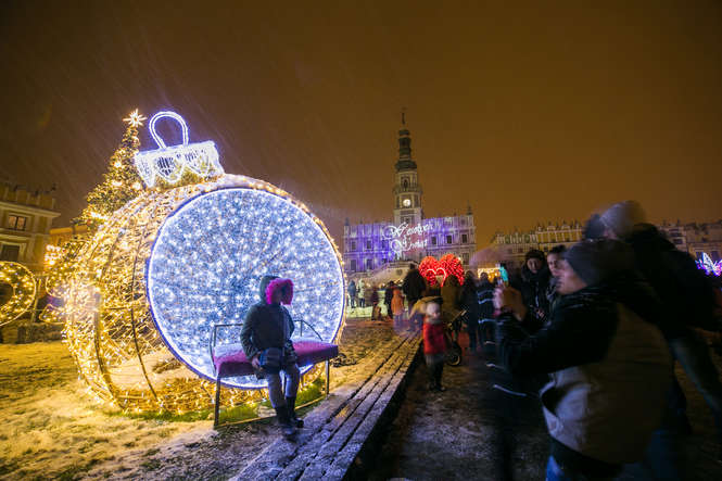Zima i iluminacje na Rynku Wielkim w Zamościu