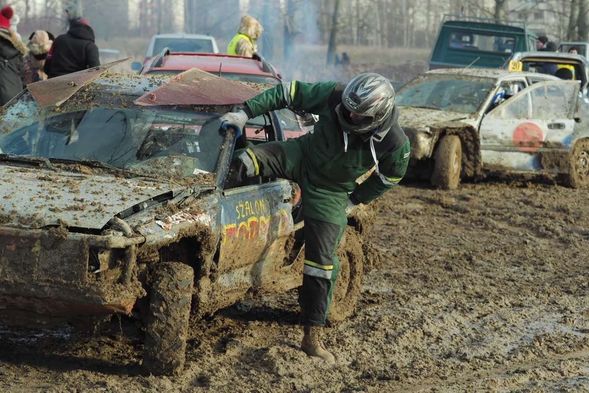 Dawnym poligon wojskowy na Majdanku zamienił się w błotnisty tor dla wyścigów wraków. Zmaganie kierowców Wrak Atak Lublin nr 12 odbyły się pod hasłem „2 Finały”. Dozwolone były wszystkie typy opon oprócz tych z kolcami, śrubami, pasami czy łańcuchami. Traktorowe, typu jodełki czy nalewki zostały dopuszczone. Impreza miała cel charytatywny. Przeprowadzono zbiórkę plastikowych zakrętek i pieniędzy. Tym razem organizatorzy wspierali siostry: 15-letnią Monikę i 5 lat młodszą Milenę. Dziewczyny cierpią na rzadką chorobę genetyczną - zespół Friedriecha a pomóc im może wyłącznie kosztowny przeszczep komórek macierzystych. Fot. Maciej Kaczanowski