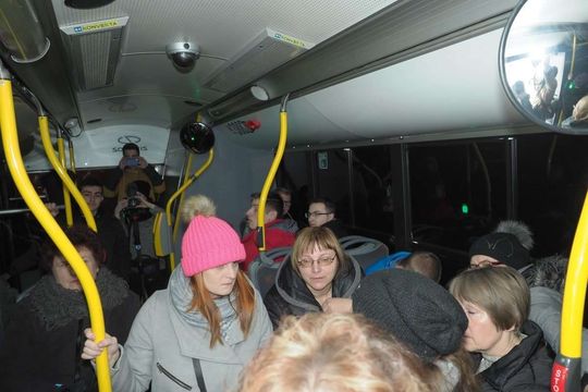 Na ulicach Lublina pojawił się nietypowy trolejbus MPK, który kursował na trasie linii 42 w ramach akcji społecznej „Światłoczuli” na rzecz dzieci niewidomych i słabowidzących, organizowanej przez SKENDE Shopping i IKEA. Wnętrze pojazdu zostało całkowicie wyciemnione. Fot. Maciej Kaczanowski