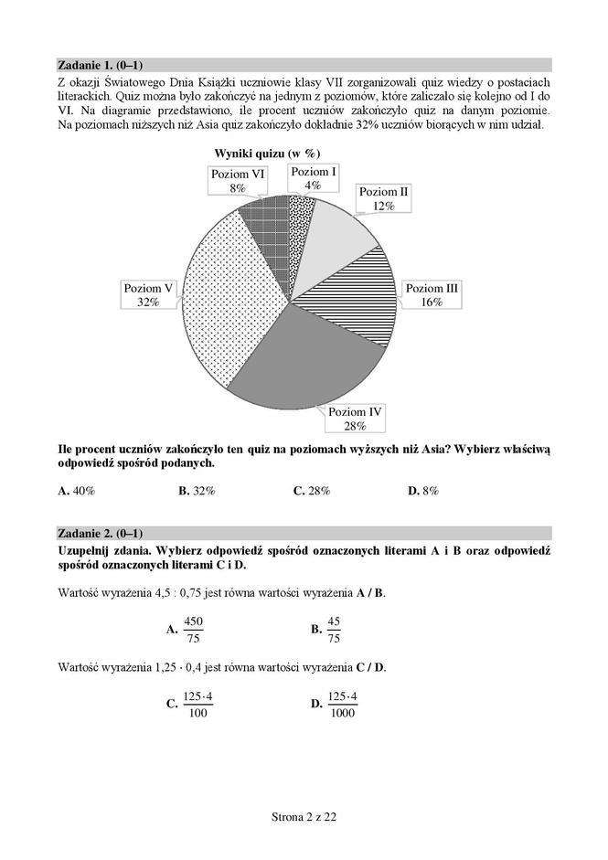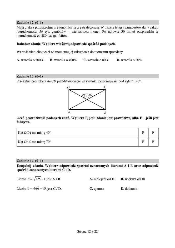 Egzamin ósmoklasisty 2018/2019 MATEMATYKA