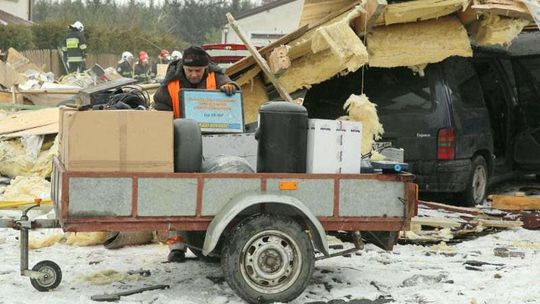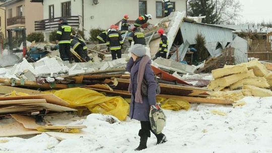 Trzy osoby zostały ranne w wybuchu, do którego doszło przed godz. 12 w zakładzie montującym instalacje gazowe do samochodów w Niedrzwicy Dużej. Eksplozja całkowicie zniszczyła budynek warsztu. Fot. Maciej Kaczanowski