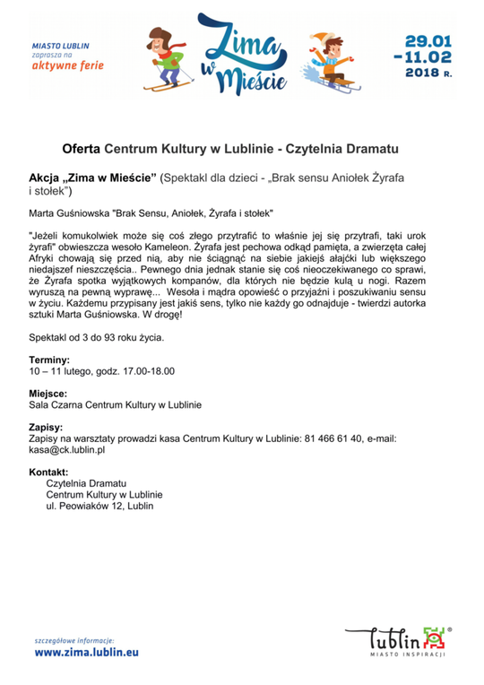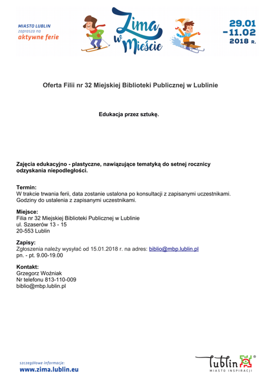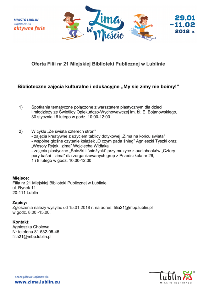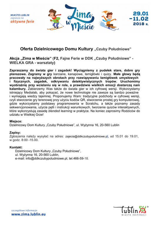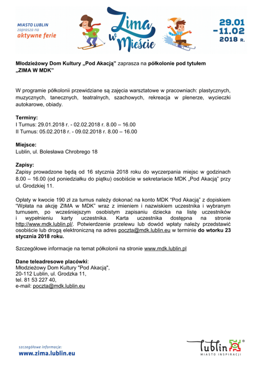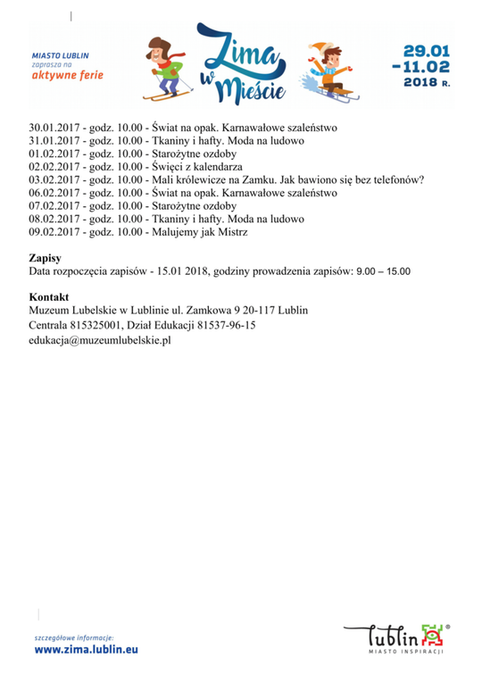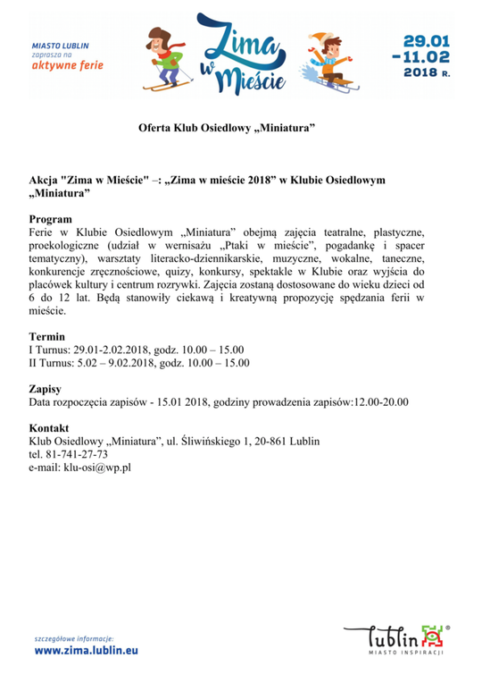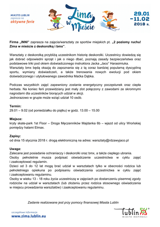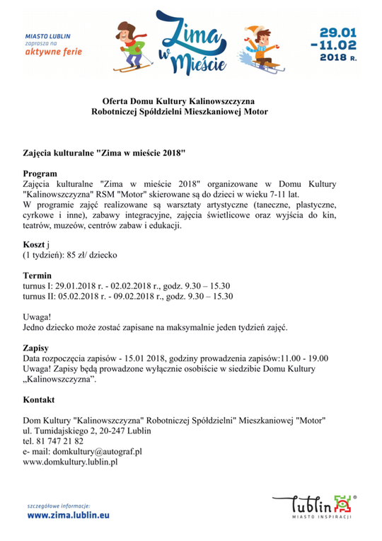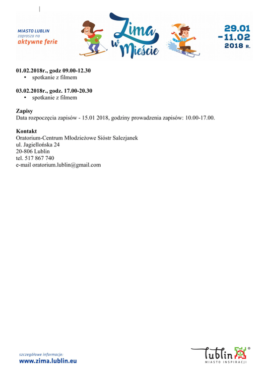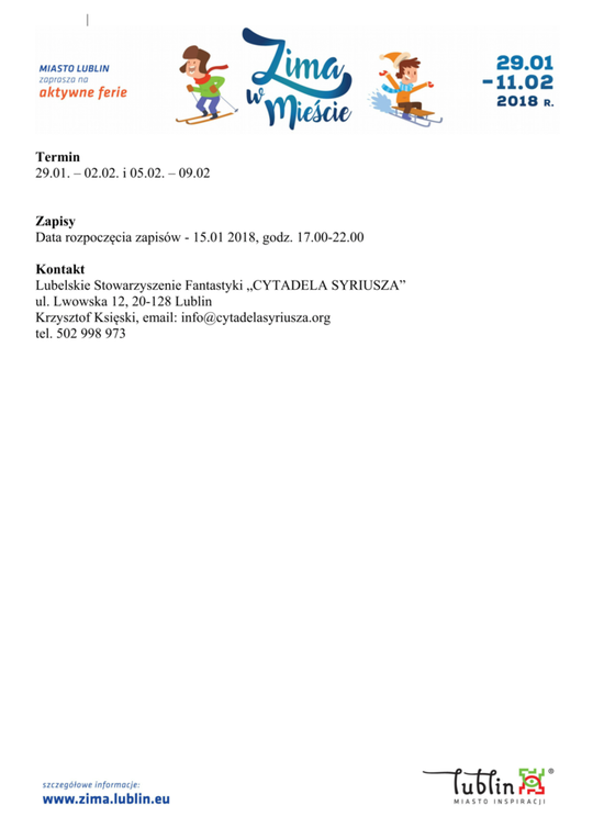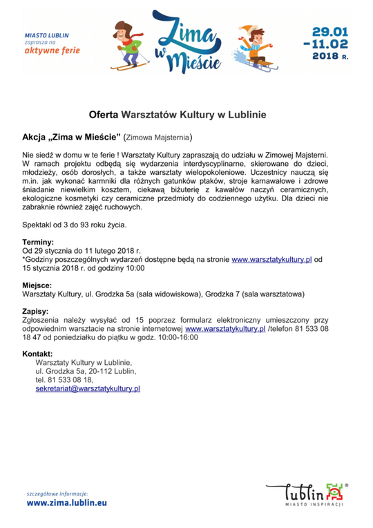 Ferie 2018 w Lublinie. Zima w mieście - baseny, lodowiska, d...
