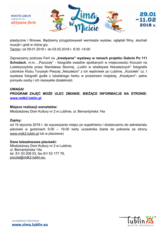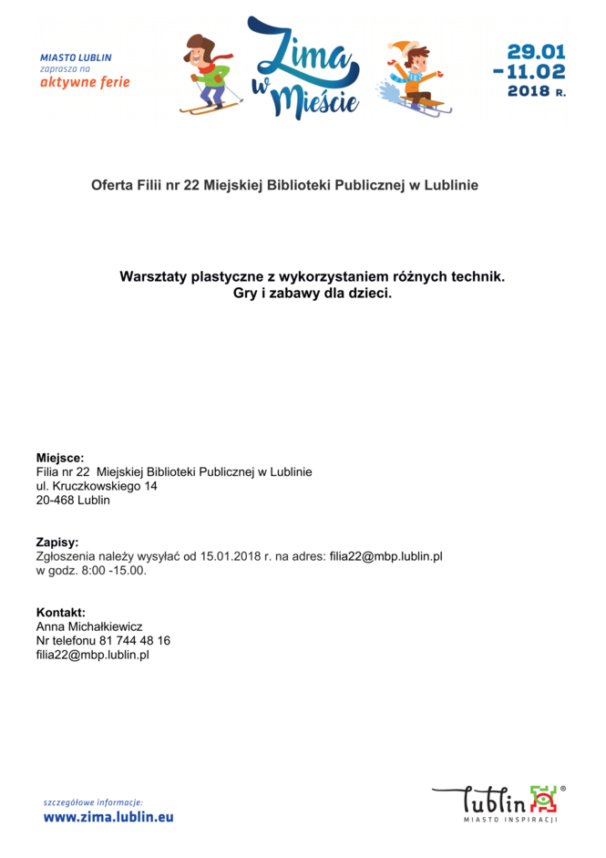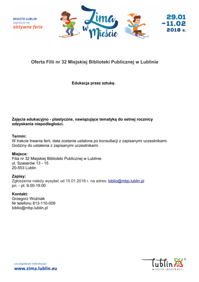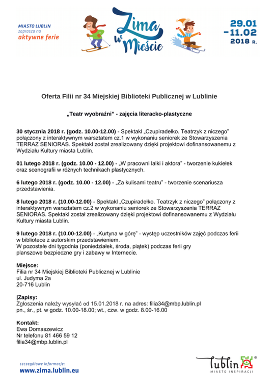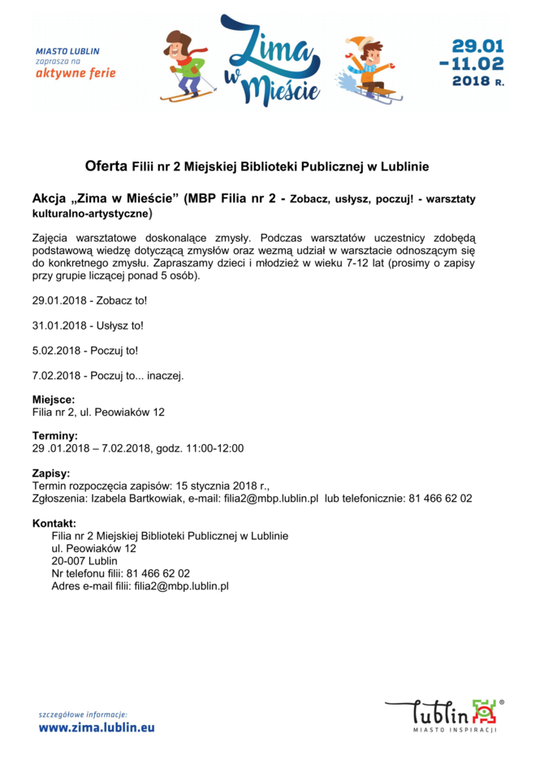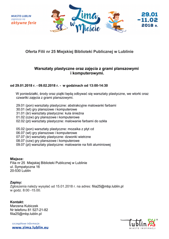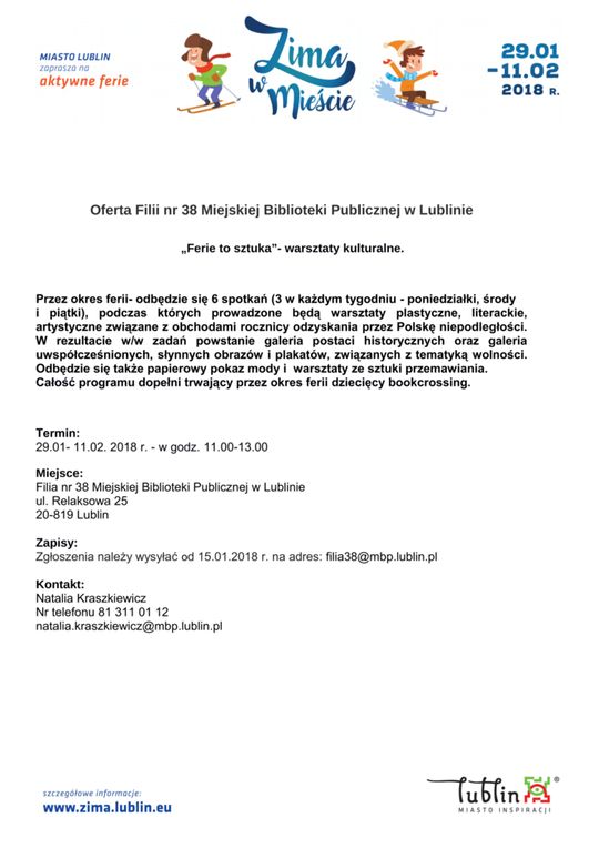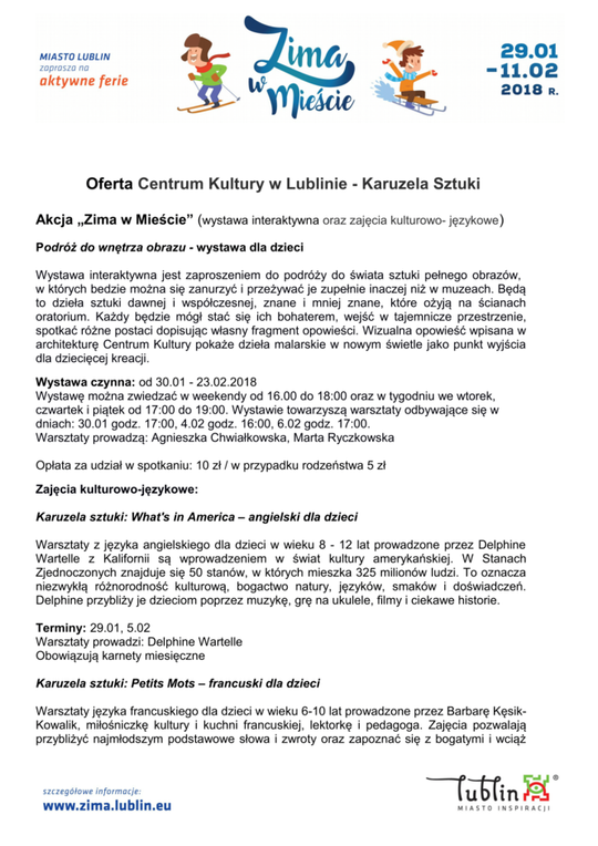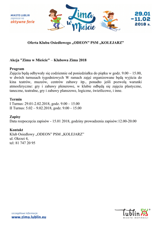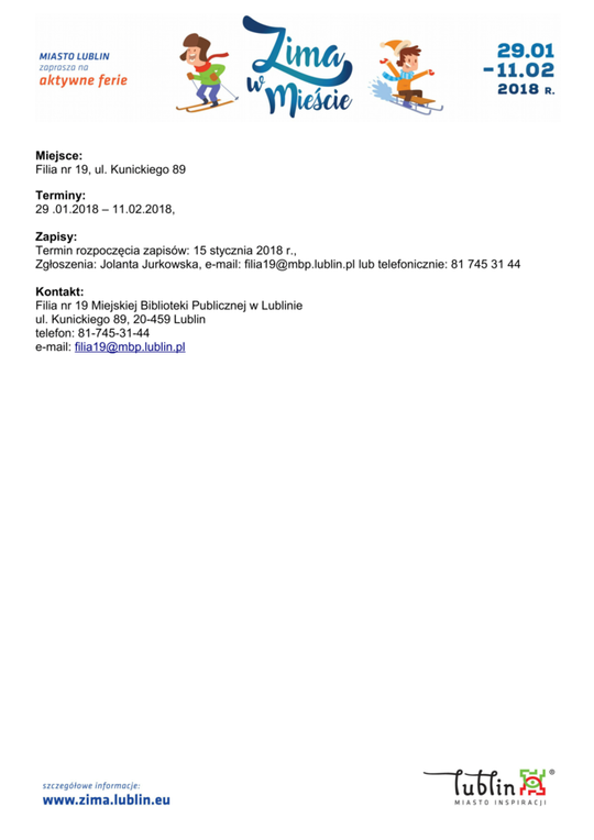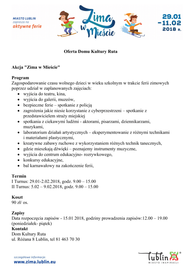 Ferie 2018 w Lublinie. Zima w mieście - baseny, lodowiska, d...