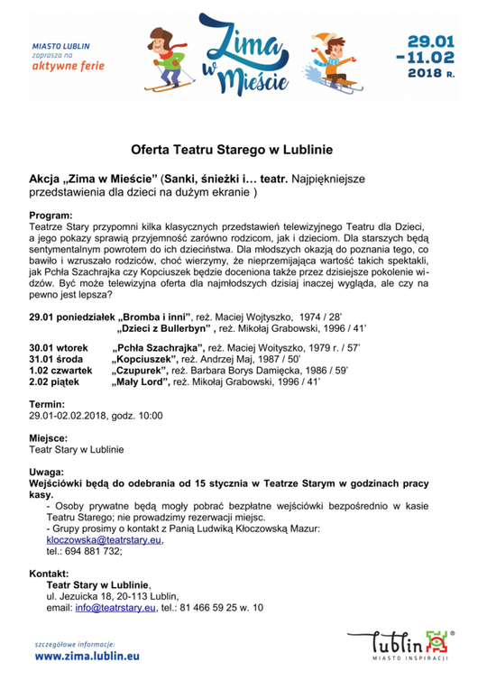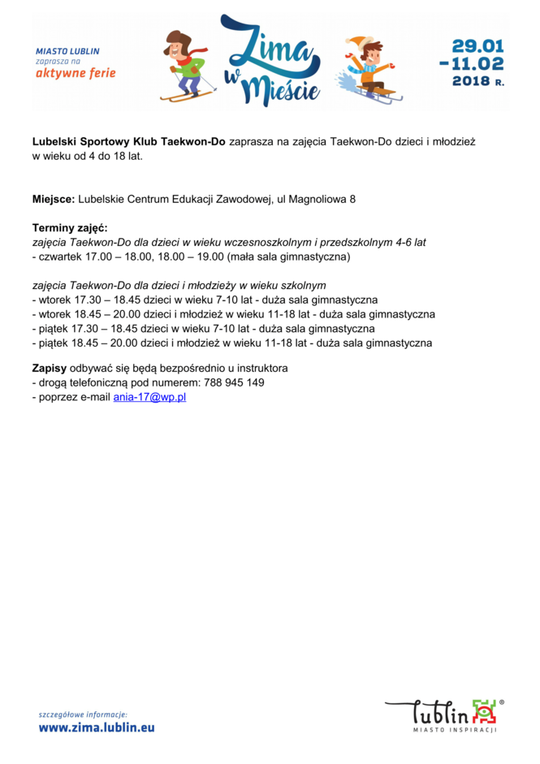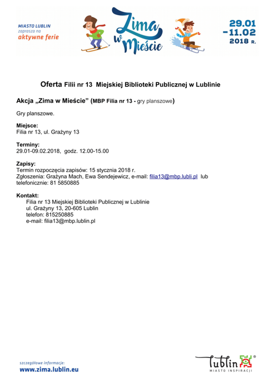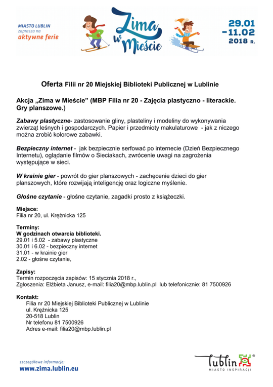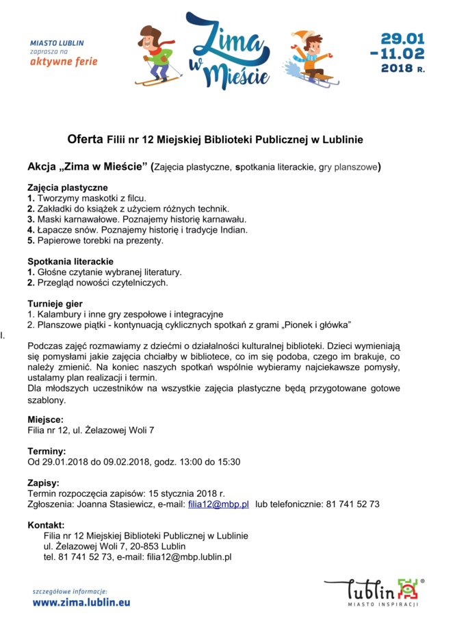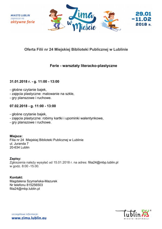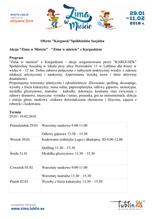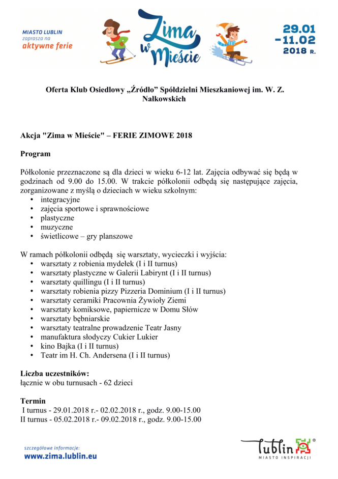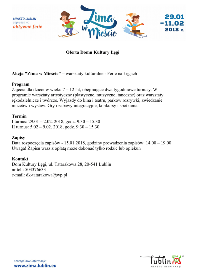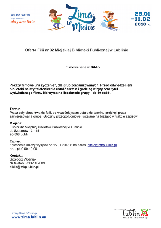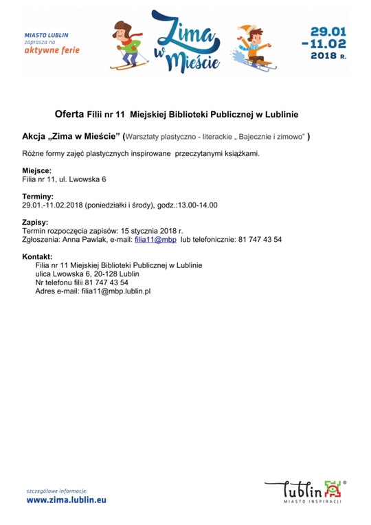 Ferie 2018 w Lublinie. Zima w mieście - baseny, lodowiska, d...