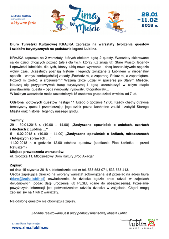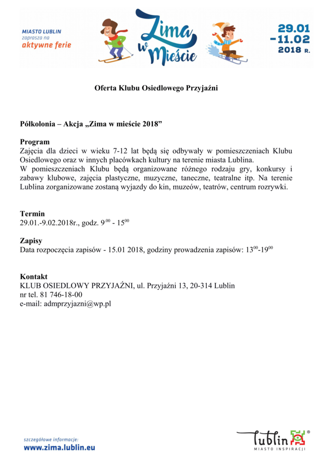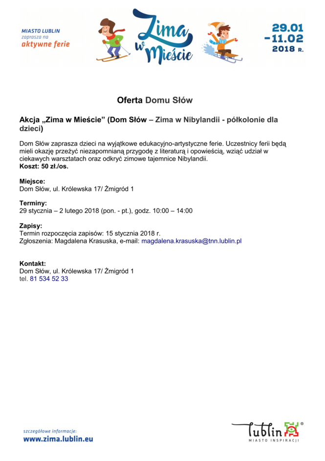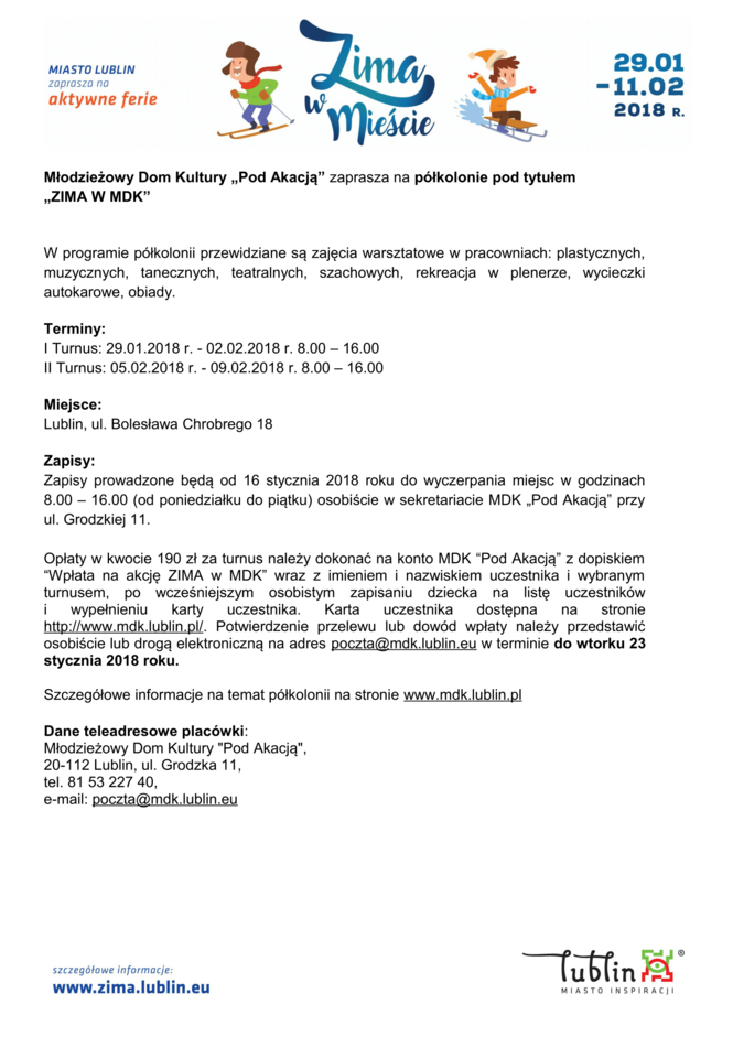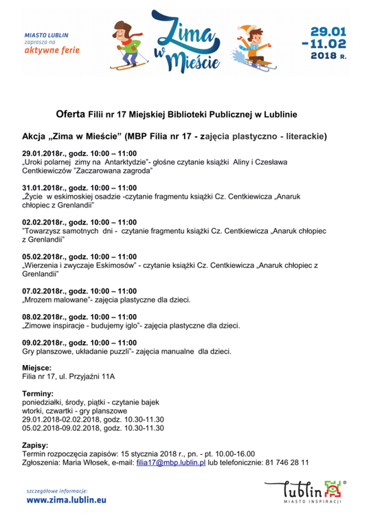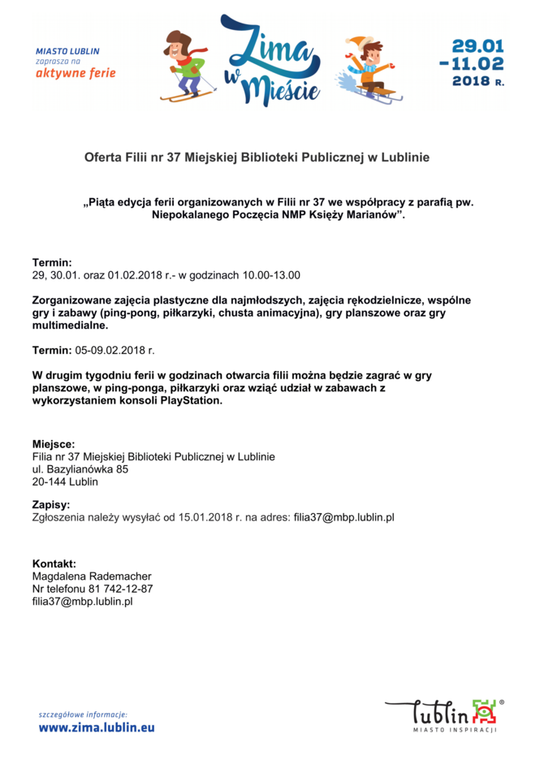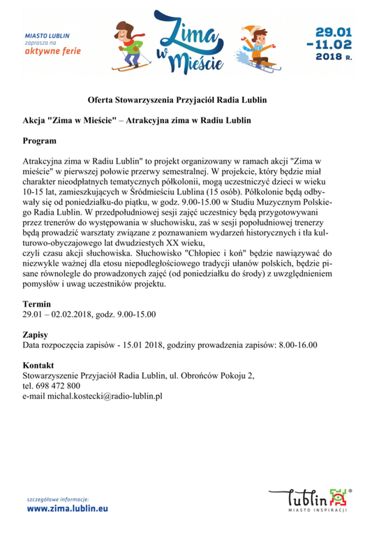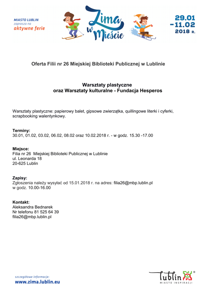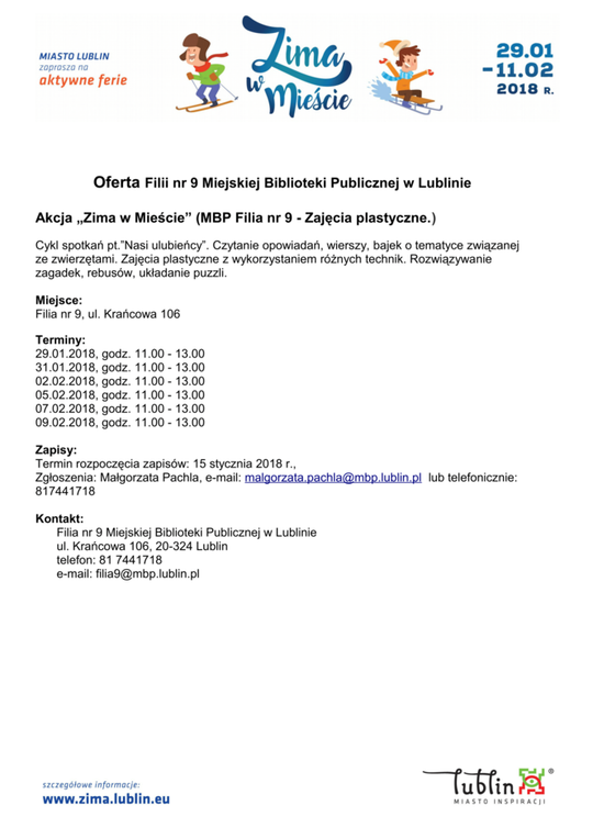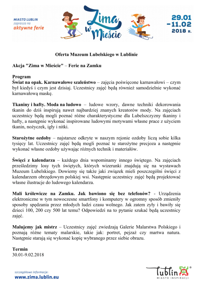 Ferie 2018 w Lublinie. Zima w mieście - baseny, lodowiska, d...