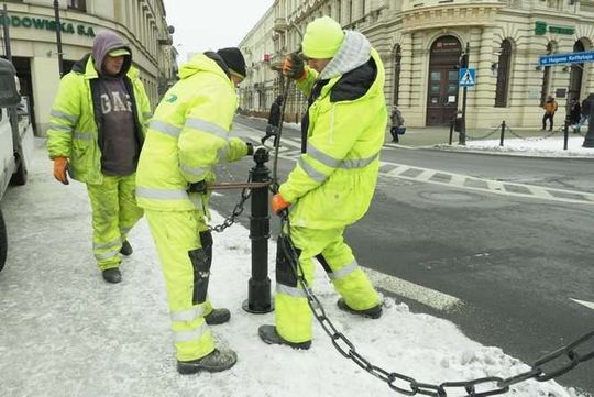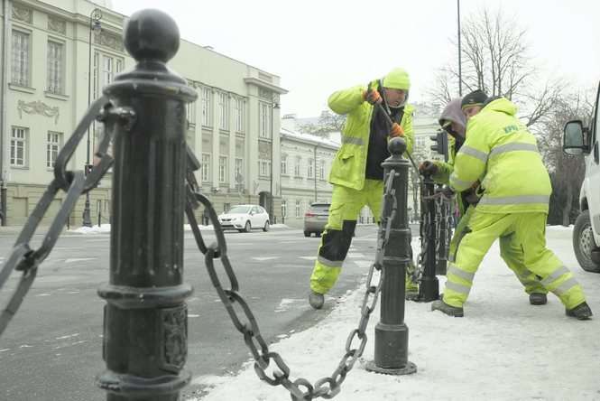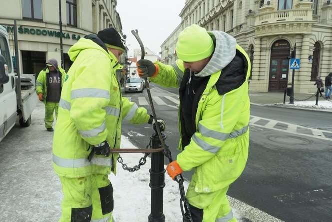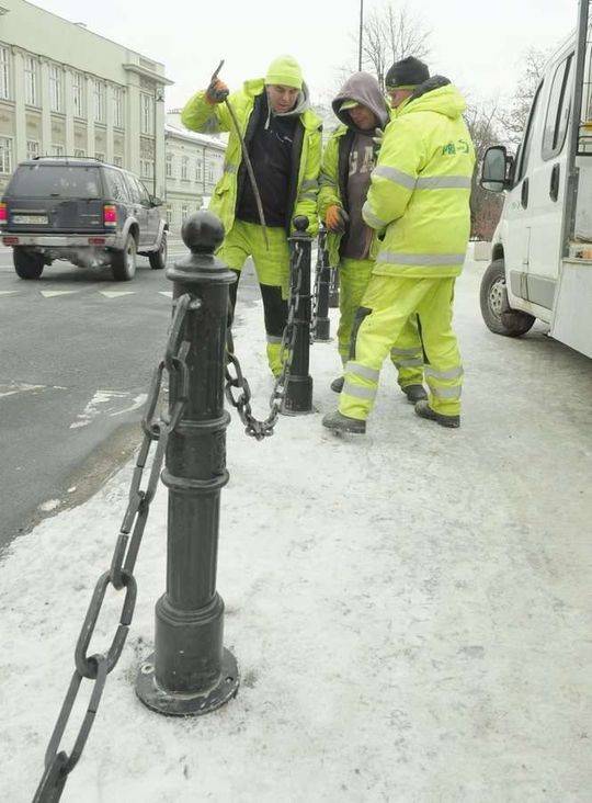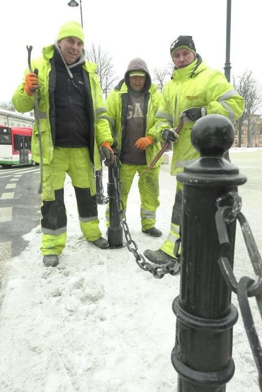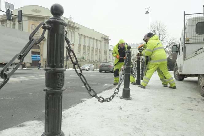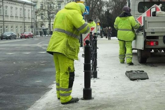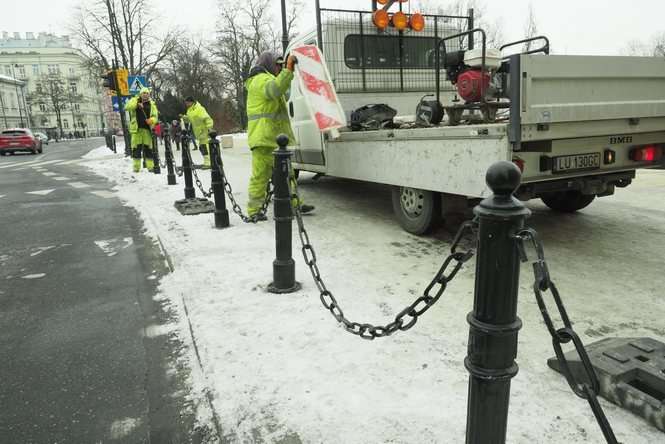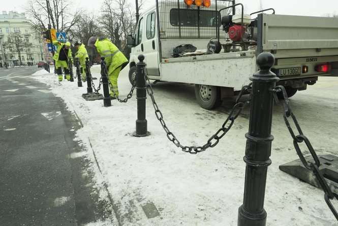 Montaż słupków przy placu Litewskim