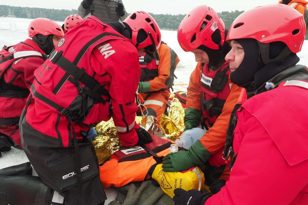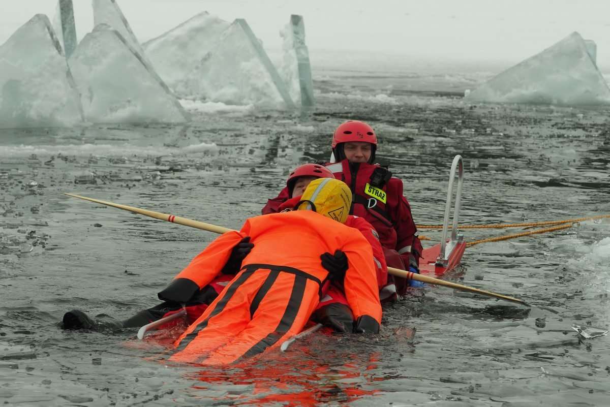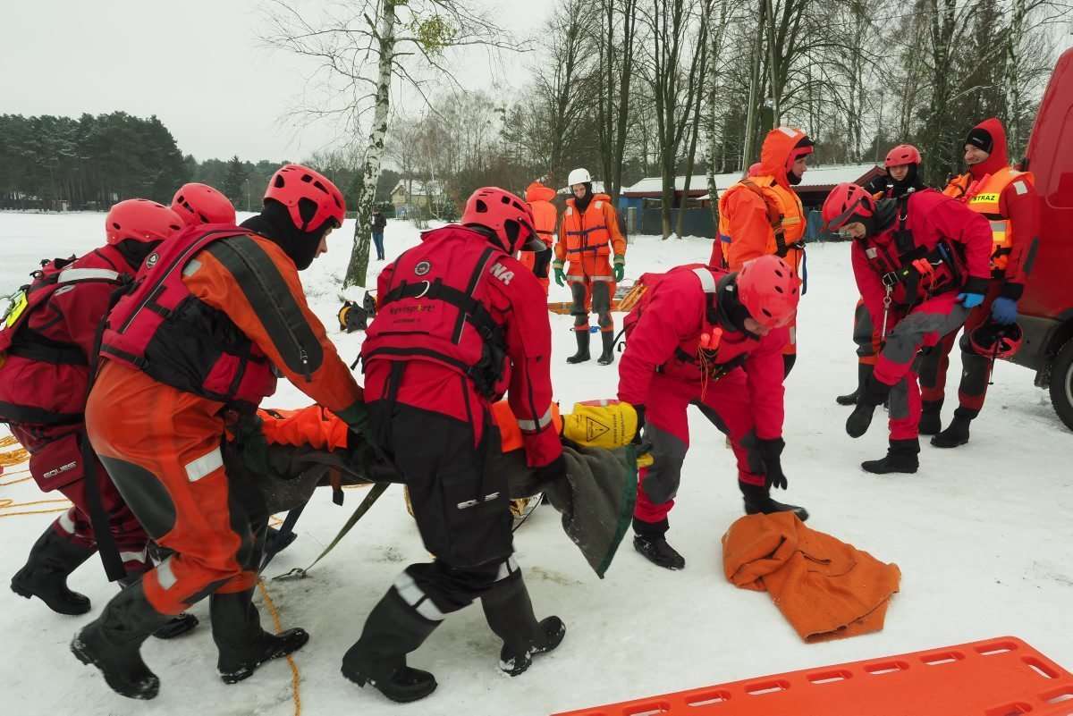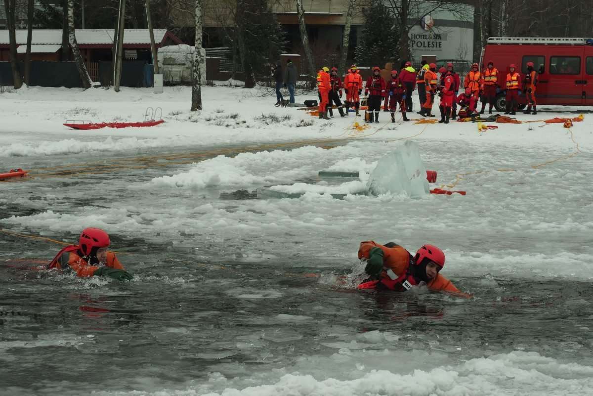 18 strażaków wzięło udział w ćwiczeniach z ratownictwa lodowego na jeziorze Białka koło Parczewa. Szkolenie odbywa się w etapach. Poznają teorię i trenują swoje umiejętności wykorzystując specjalistyczny sprzęt, np. sanie lodowe czy kombinezony wypornościowe.