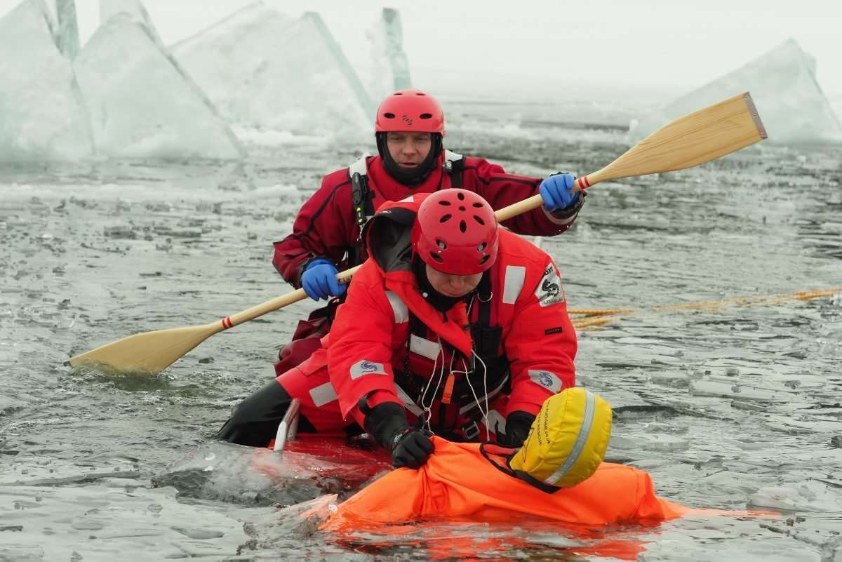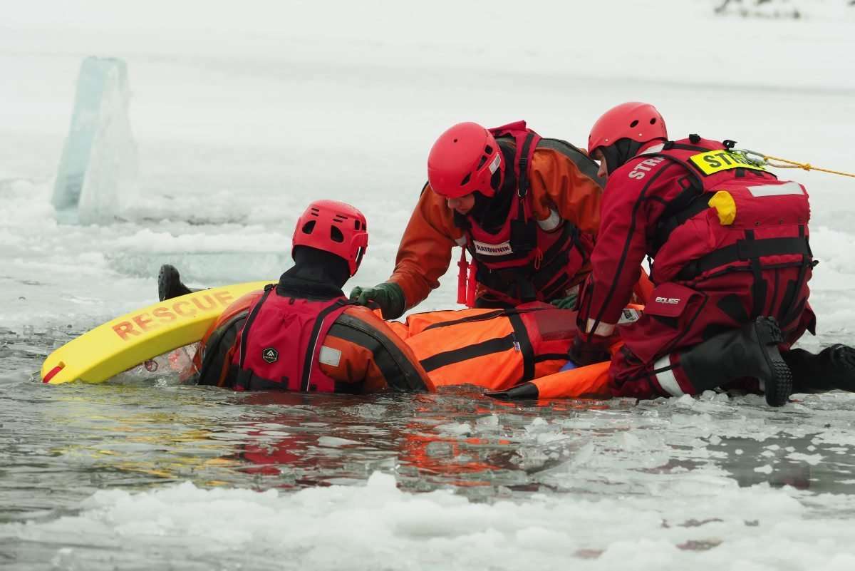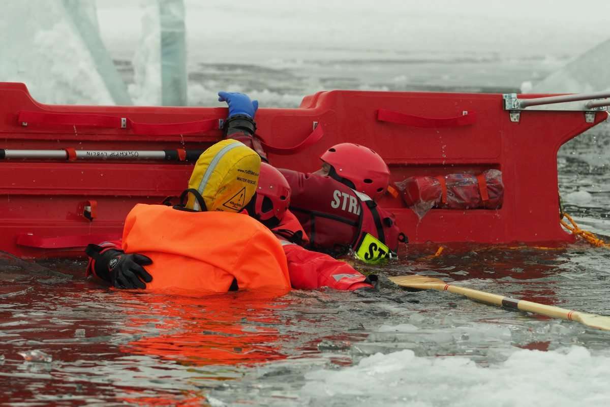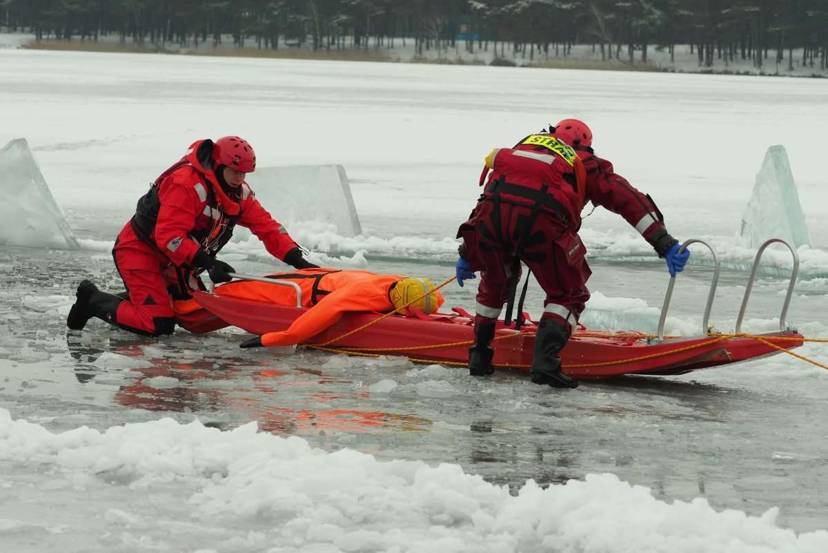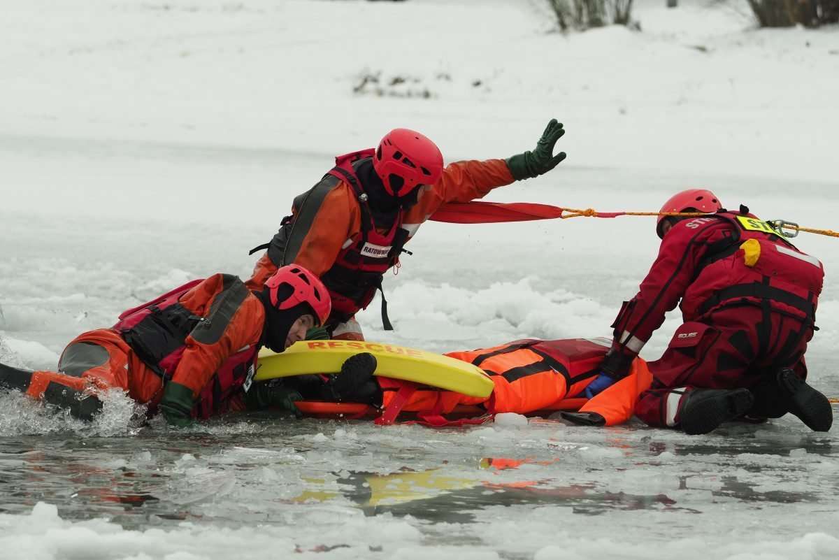 18 strażaków wzięło udział w ćwiczeniach z ratownictwa lodowego na jeziorze Białka koło Parczewa. Szkolenie odbywa się w etapach. Poznają teorię i trenują swoje umiejętności wykorzystując specjalistyczny sprzęt, np. sanie lodowe czy kombinezony wypornościowe.
