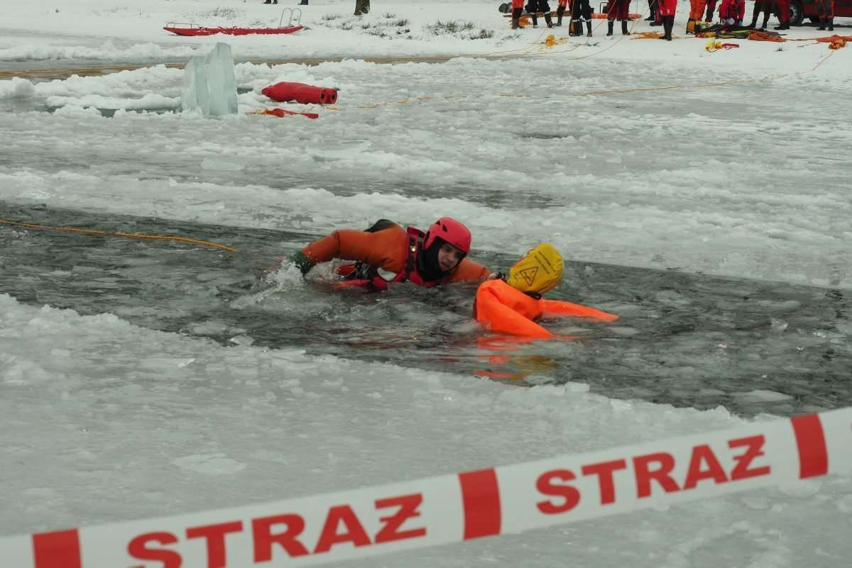 Ćwiczeniach strażaków z ratownictwa lodowego na jeziorze Białka