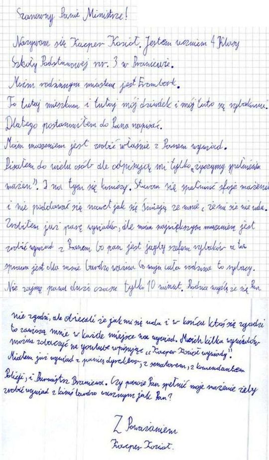 List ucznia do ministra