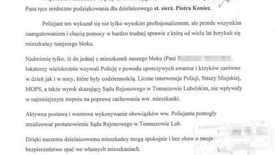 Tomaszów Lubelski: Mieszkańcy dziękują policjantowi za pomoc