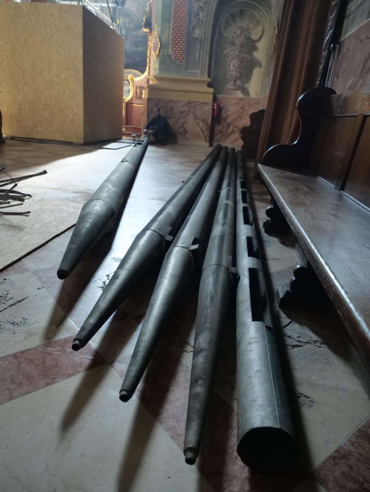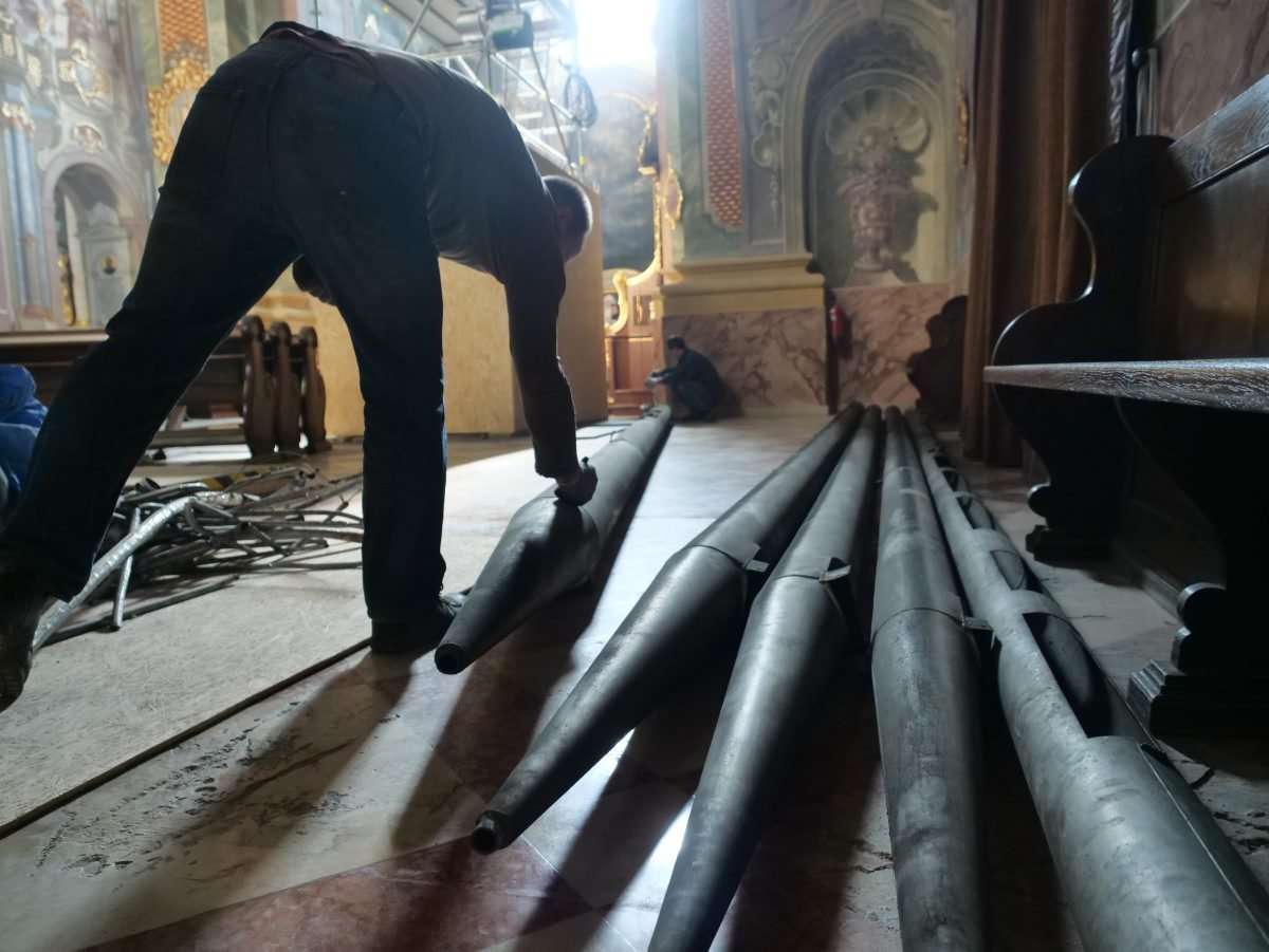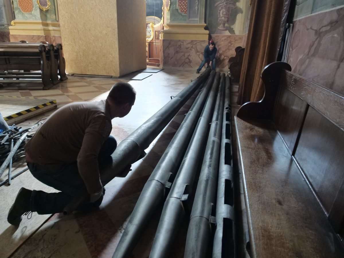 W archikatedrze ściągane były z chóru najdłuższe, ponad ośmiometrowe piszczałki. Trwa konserwacja organów. Fot. Maciej Kaczanowski