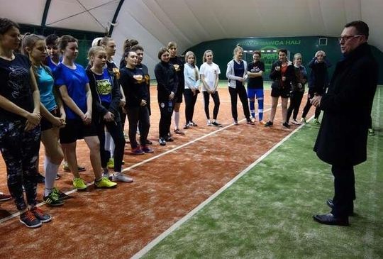 rozpoczęcie turnieju, przemawia Jerzy Rejdych, trener klubu "Perły Lublin"