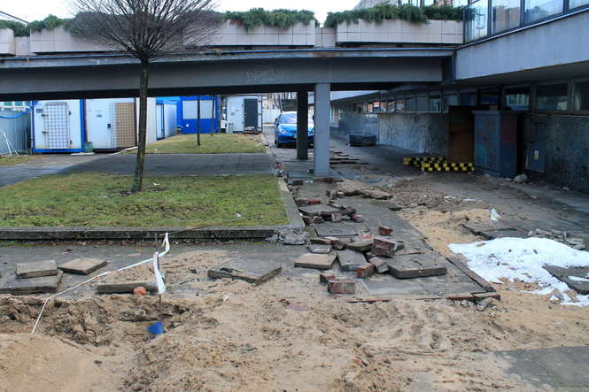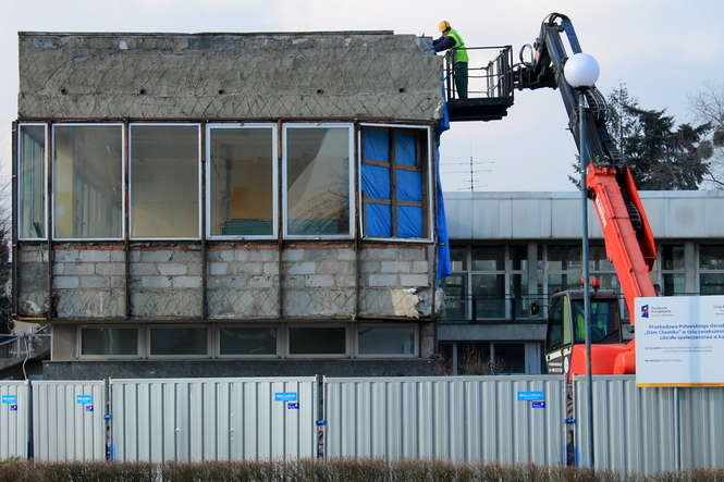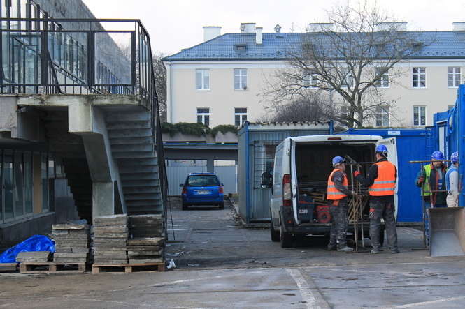 Robotnicy opuszczają plac budowy