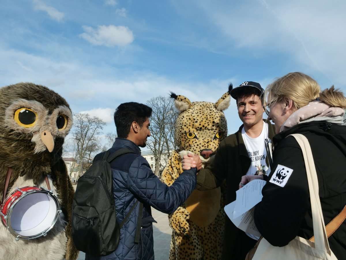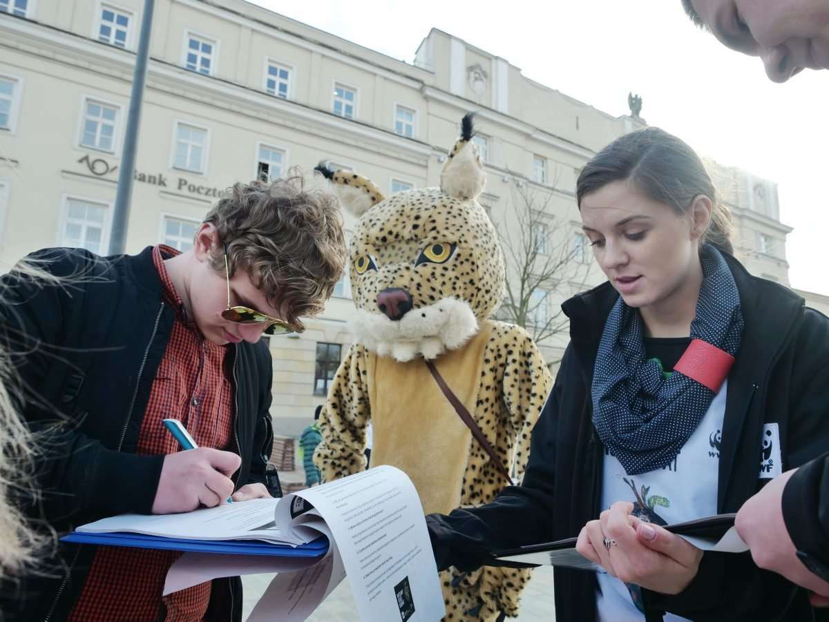 Na pl. Litewskim wolontariusze zbierali podpisy pod petycją o utworzenie Turnickiego Parku Narodowego w Karpatach. Fot. Maciej Kaczanowski